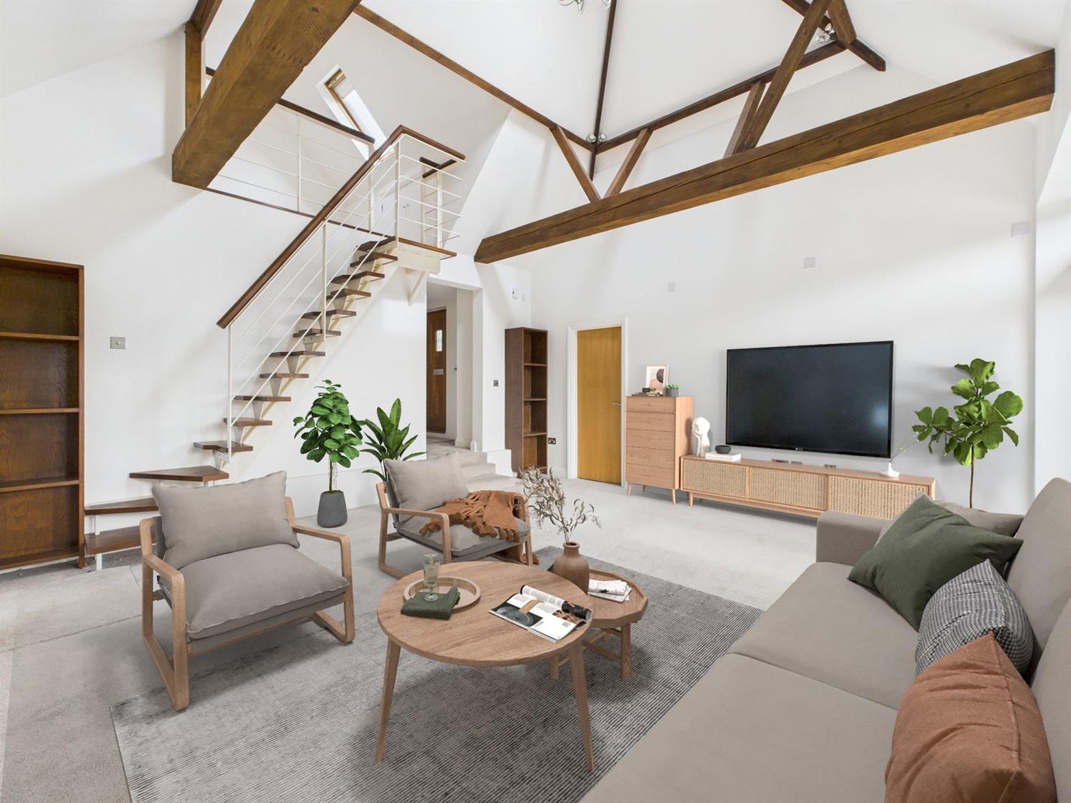 PRICE RANGE £450,000 - £475,000 This delightful character residence is situated within a bespoke development of converted barns. The property having just undergone complete redecoration, boasts good size living accommodation, featuring a large light and airy living/dining room with high vaulted and beamed ceiling, a principal bedroom with a luxury en-suite shower room, second bedroom with adjoining luxury bathroom and a modern, fitted kitchen with built in appliances. Above the living/dining room is a mezzanine study, access to which is from a purpose built metal framed paddle staircase. There is zoned electric underfloor heating as well as surround sound and satellite cabling. The property also features a good sized enclosed garden and within the development there is a large forecourt for parking. Graylands Farm Barns is located just to the North of Horsham off the A264 and is within a short walk of Warnham Station for journeys for London and the coast.