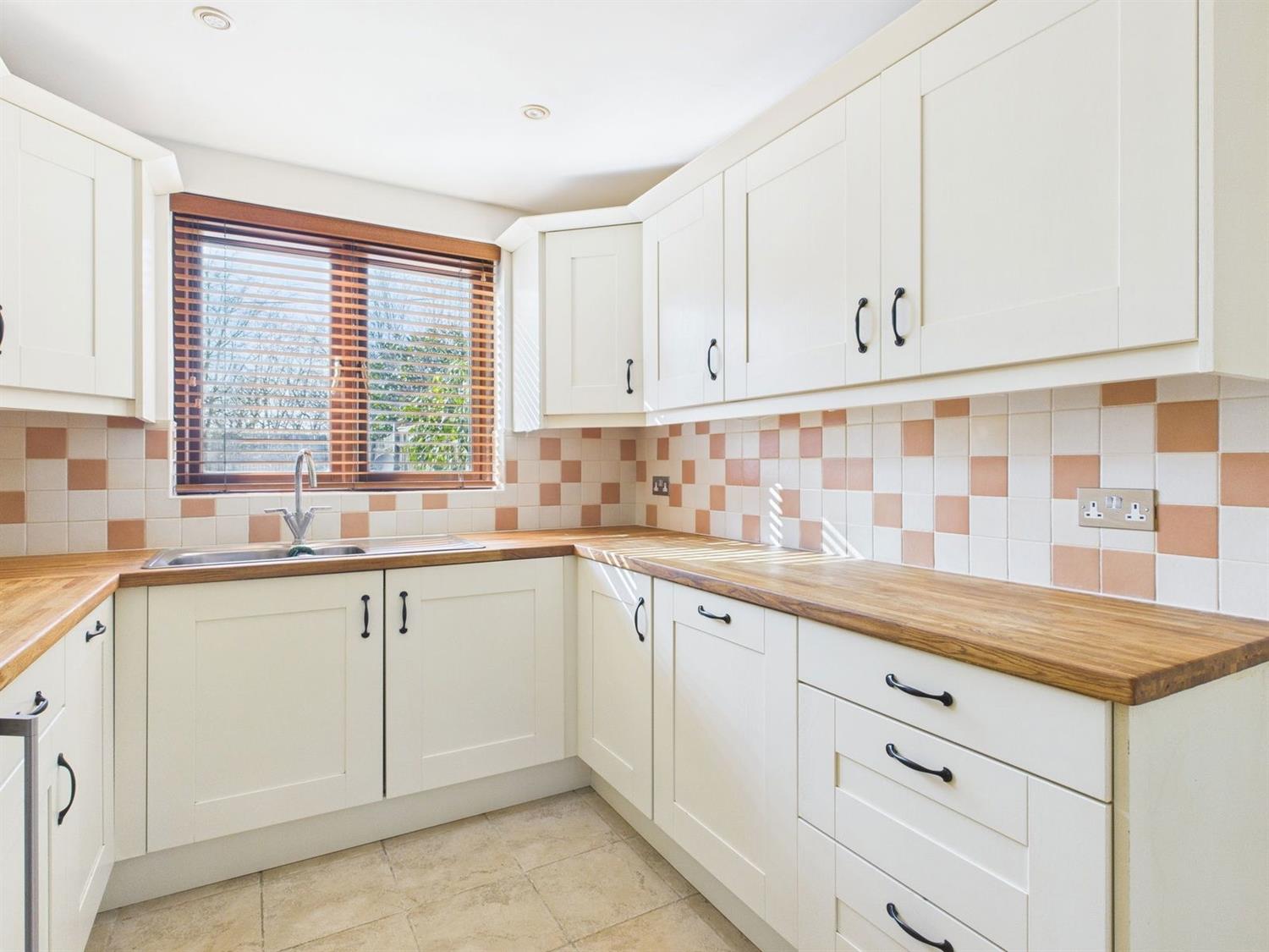 Double glazed rear aspect. Fitted with a range of base and drawer units as well as wall mounted cupboards in cream Shaker style finish having wooden block worktop surfaces with ceramic tiled splashbacks incorporating an electric touch control hob with extractor hood over, one and a half bowl single drainer stainless steel sink with monobloc tap, Gaggenau electric oven, integrated Beko dishwasher, Blomberg washing machine, Hotpoint fridge/freezer, ceramic tiled flooring with zoned underfloor heating, downlighting and pelmet lighting.