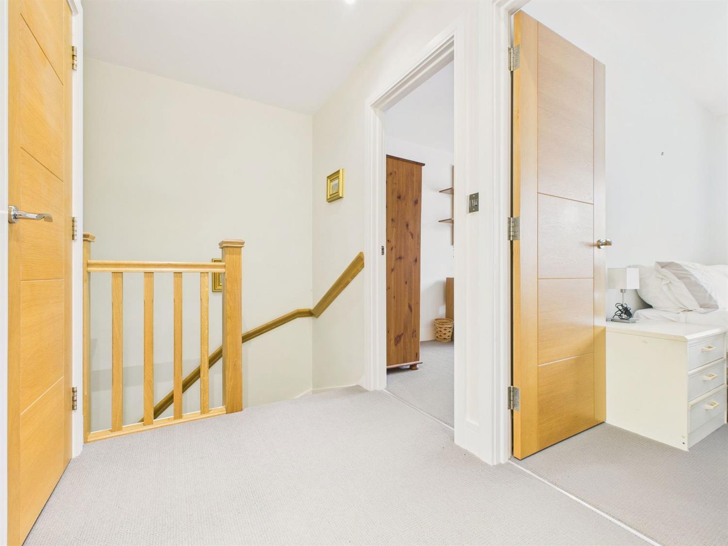 With loft hatch with access to the loft space. Deep cupboard housing Megaflo hot water cylinder with shelving.