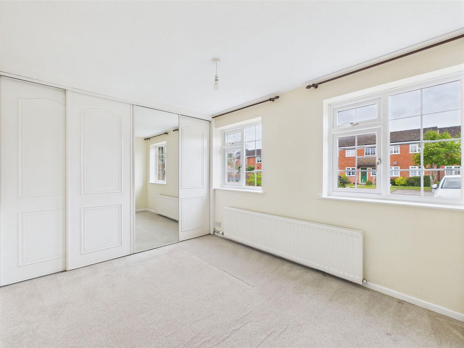 Bedroom Twin double-glazed front aspect window, radiator, full-width fitted wardrobe with a hanging rail, shelving and mirrored sliding doors.
