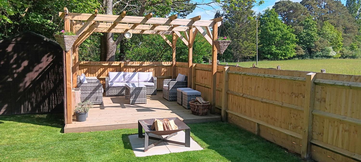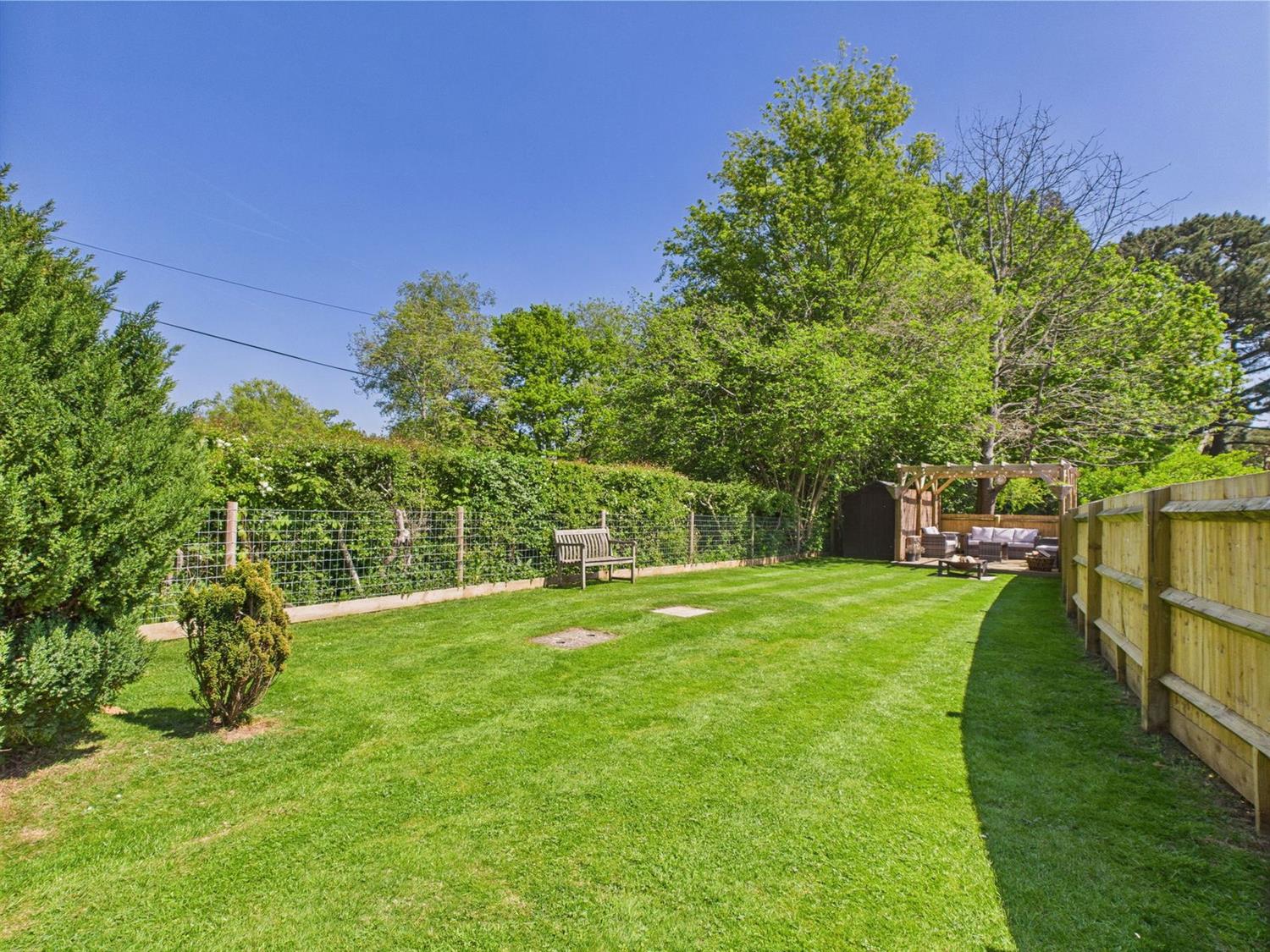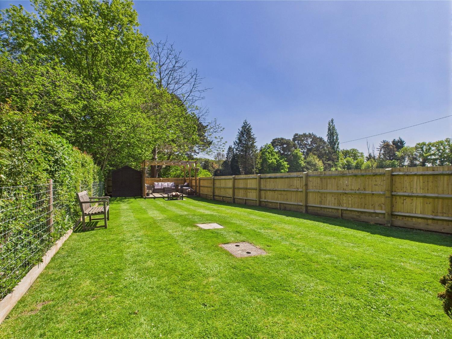 A gate leads to the rear garden which is laid primarily to lawn and is of a good length with hedge borders to one side and a low-level wooden fence to the other, Timber garden shed. At the rear of the garden is a private decked seating area with a pergola and electric power. A gate to the side leads to a side garden which is laid to lawn with direct access to the front and to the sheltered sun terrace which has a sunny Southerly aspect.