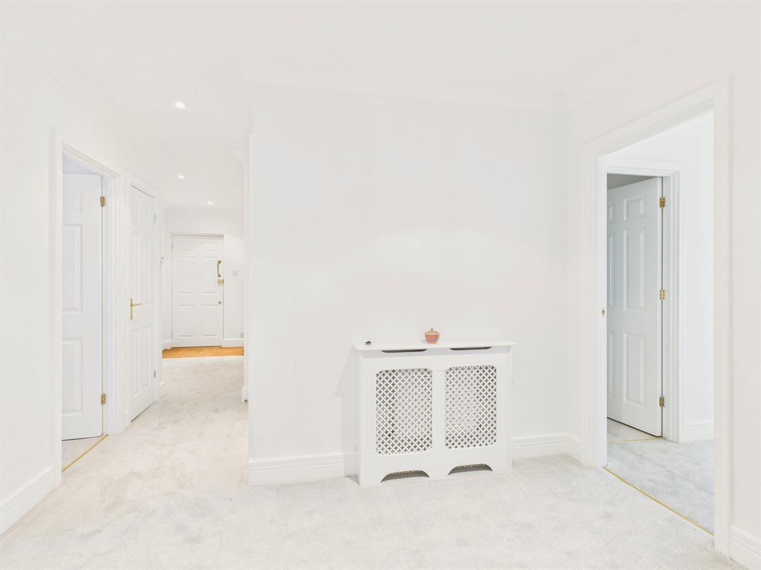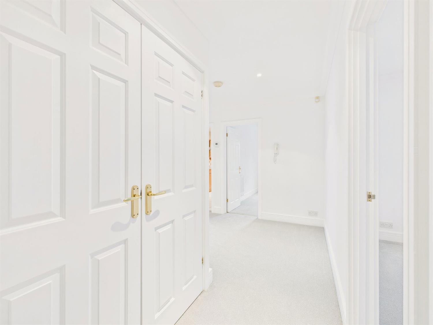With coved ceiling, down lighting, two radiators (one with a lattice fronted cover), entry phone, airing cupboard with electric bar heater and shelving, double width hanging coats cupboard.