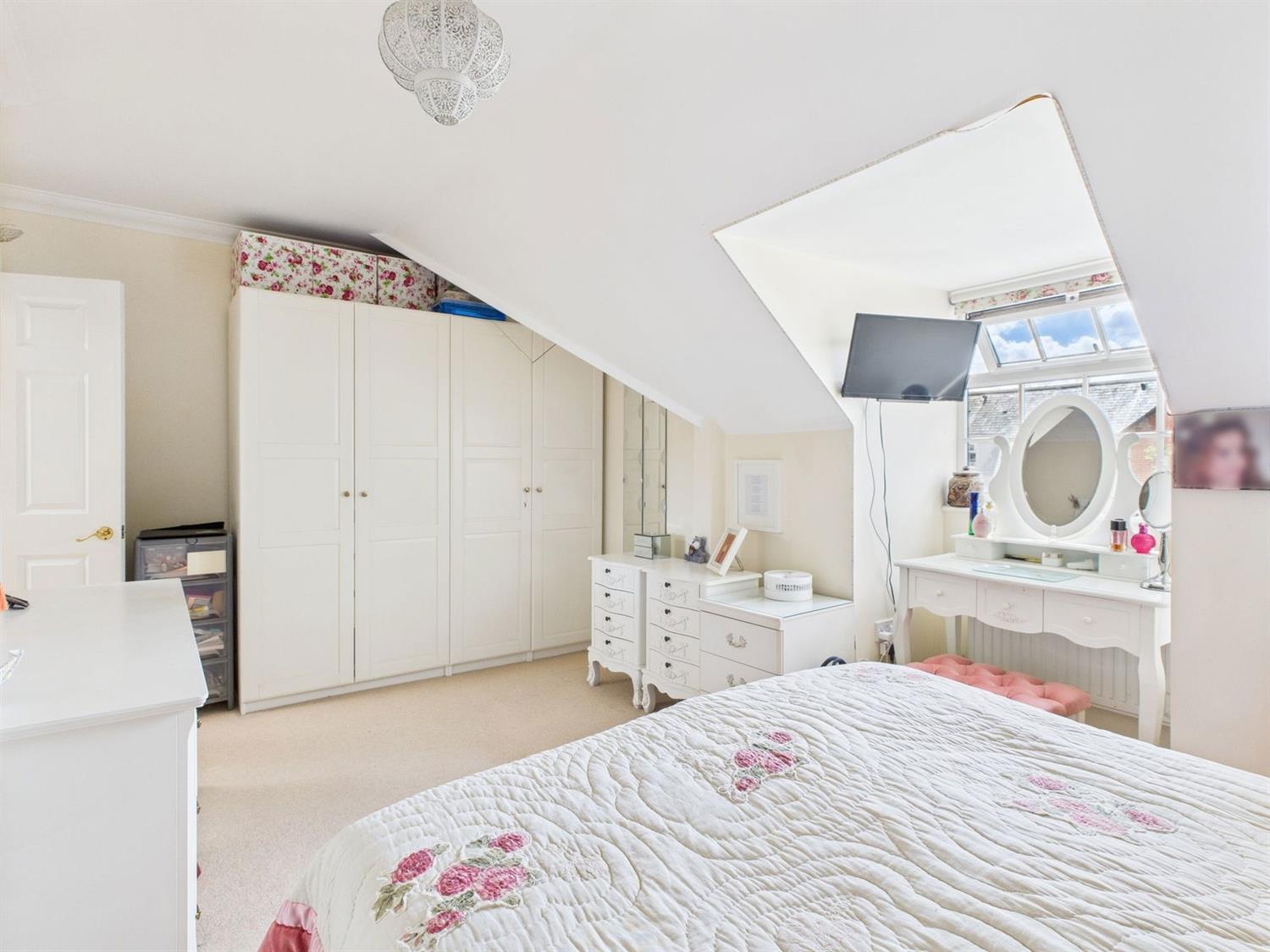 Bedroom 1Feature double glazed arch window to the side, triple built in wardrobe cupboard cupboards, double width walk-in cupboard, radiator.
