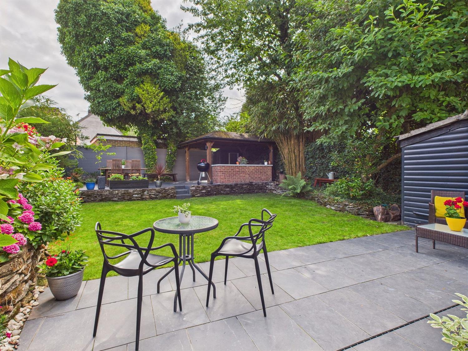 To the rear, the garden is a delight. Approximately 48ft and enjoying a very good degree of privacy. The cottage style gardens feature a slate paved patio adjoining the rear of the property which extends the entertaining area from the kitchen. There is a large area of area of lawn with raised border planting, with ornamental lighting enclosing the garden beautifully whilst still allowing in light. A natural stone retaining wall and steps rise to a further area of slate paved patio where there is a timber gazebo with brick built outdoor kitchen and Carrara marble tops, lighting (within the gazebo and seating area) and power sockets. There is an outside tap, additional security light and a useful area to the side.