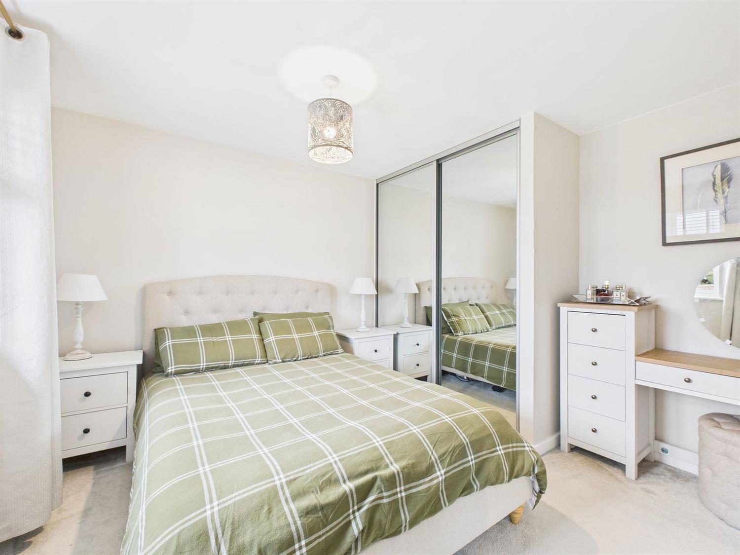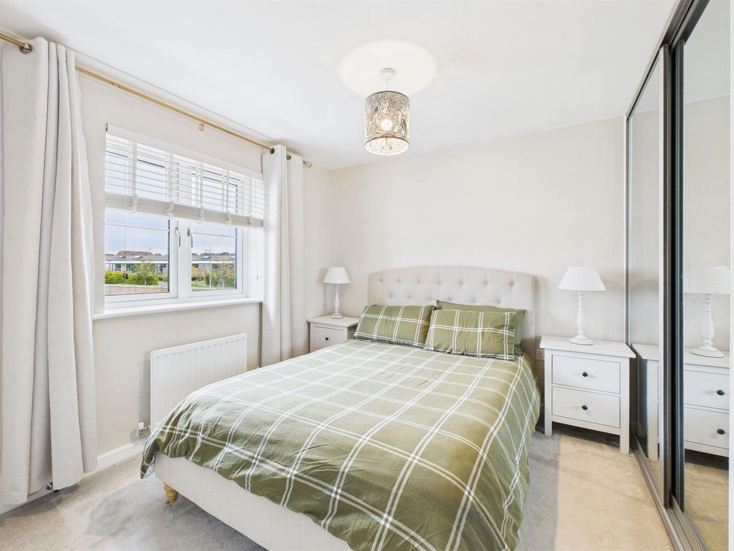 Principal BedroomA generous double bedroom with front aspect window, radiator, and double fitted wardrobe with mirrored sliding doors.