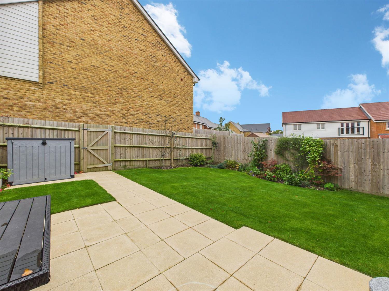 OutsideThe rear garden enjoys a good degree of privacy and is partly walled, mainly laid to lawn with a paved patio area, raised vegetable planters, and established borders with fruit trees, shrubs, and climbing plants. A rear gate provides external access.