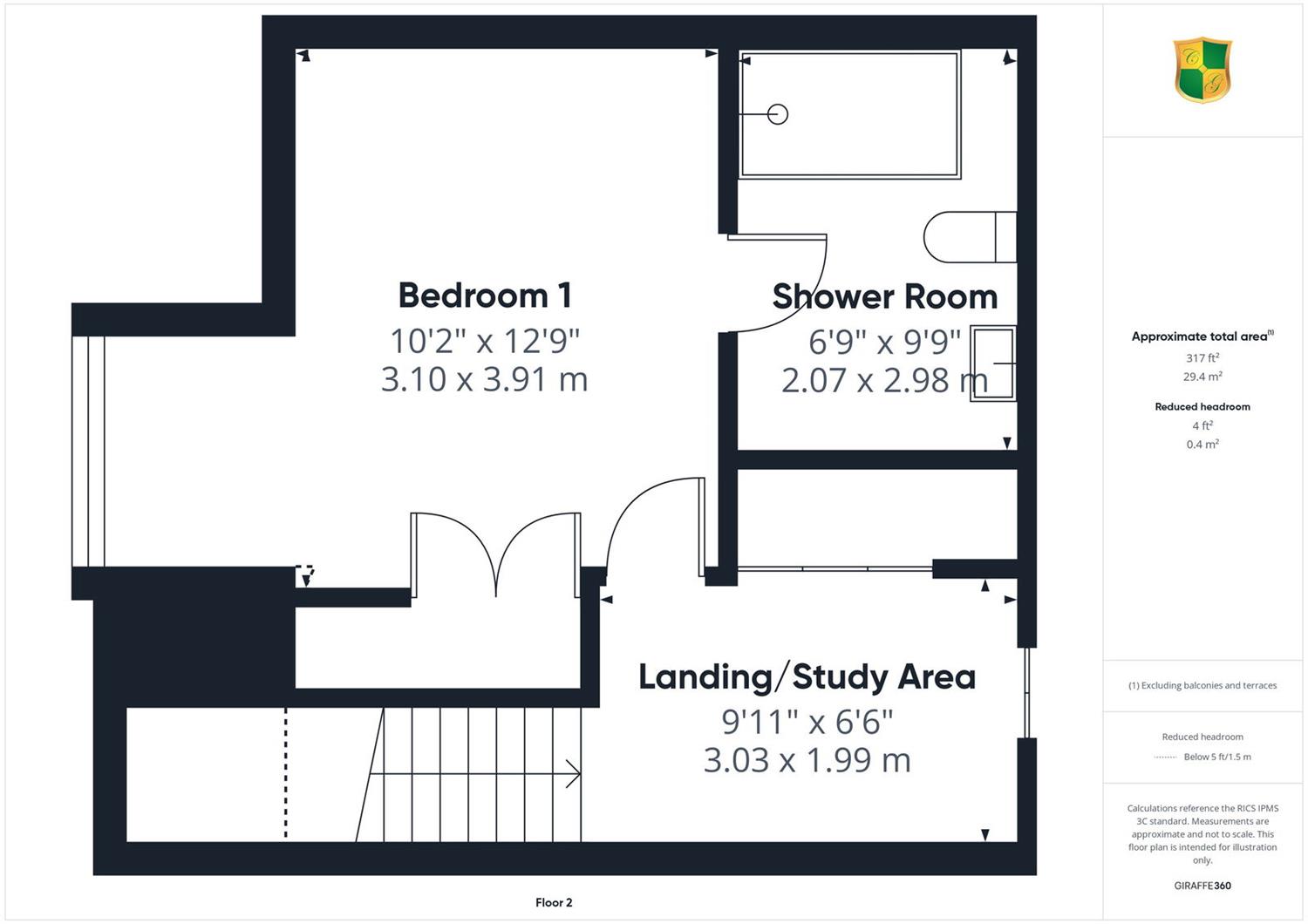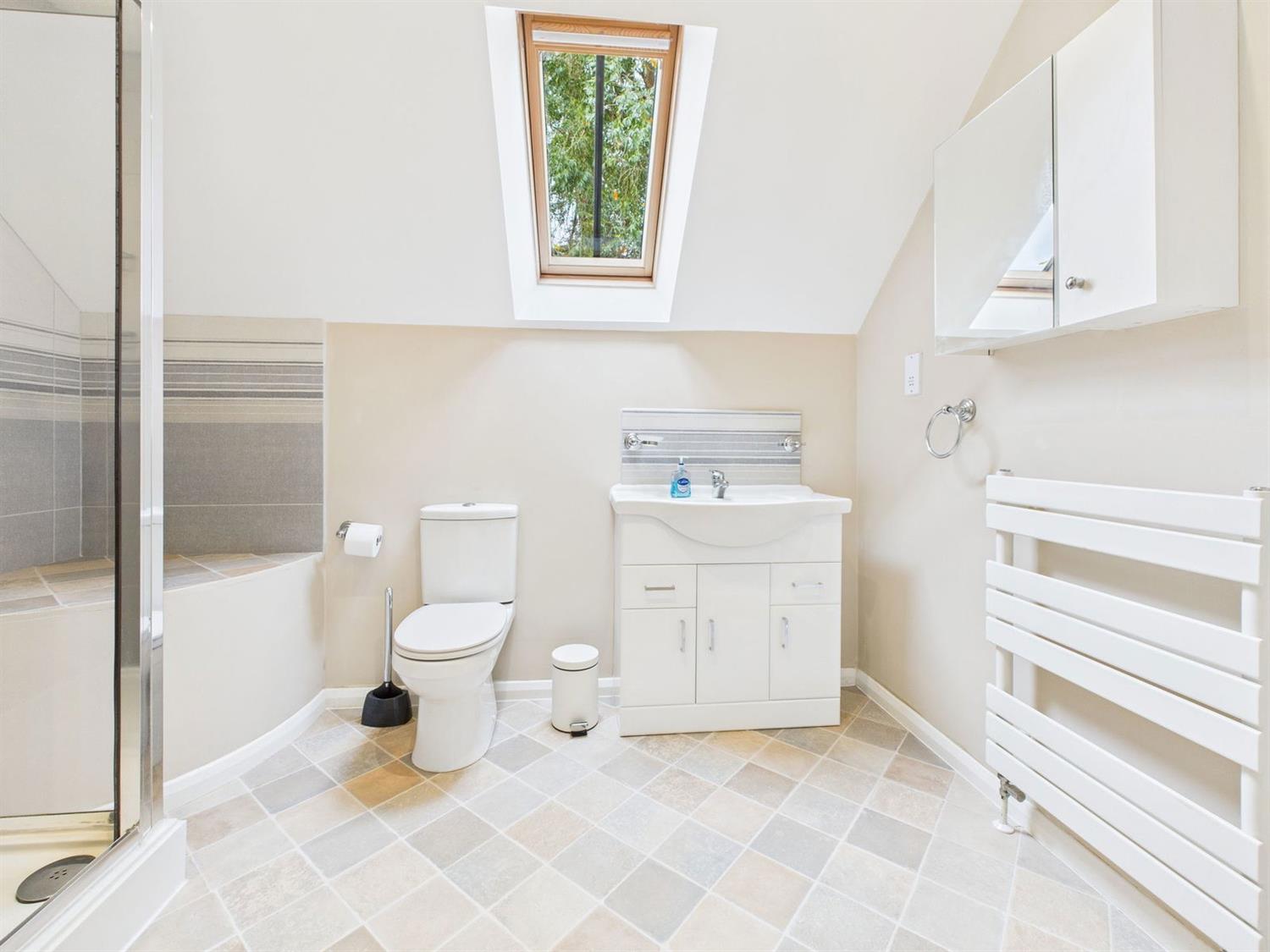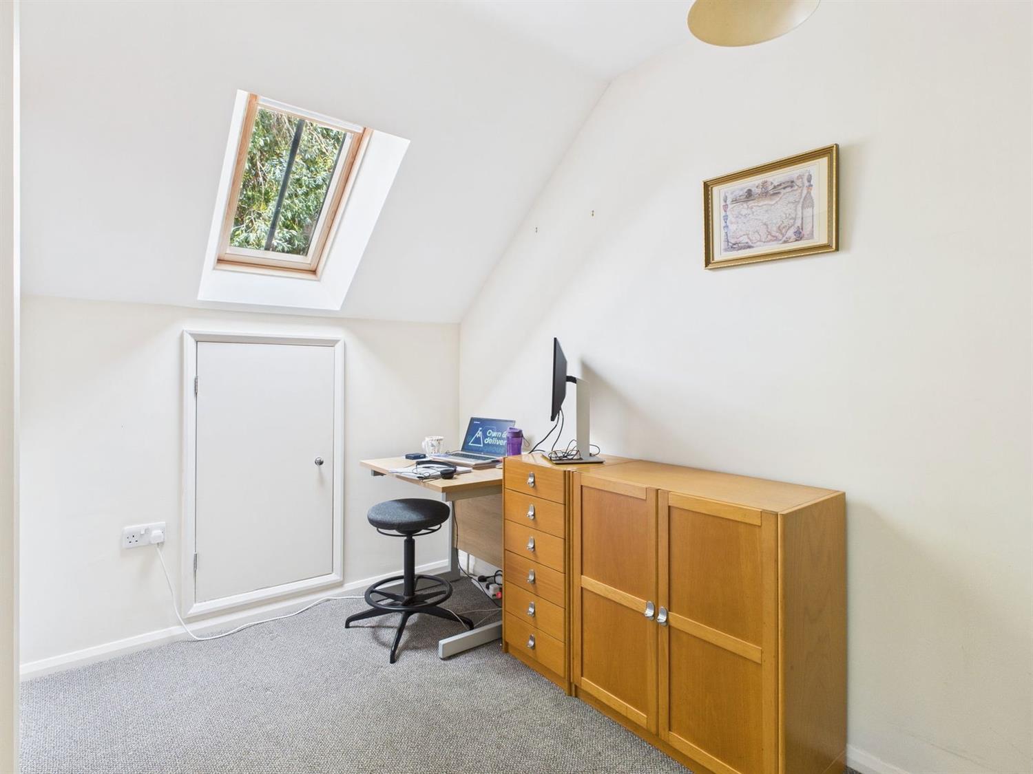 We feel that this area is large enough to be utilised as a study. There is an attractive sloping ceiling with a double glazed Velux-style window, radiator, and an eaves style storage area, mains power smoke alarm, door to the