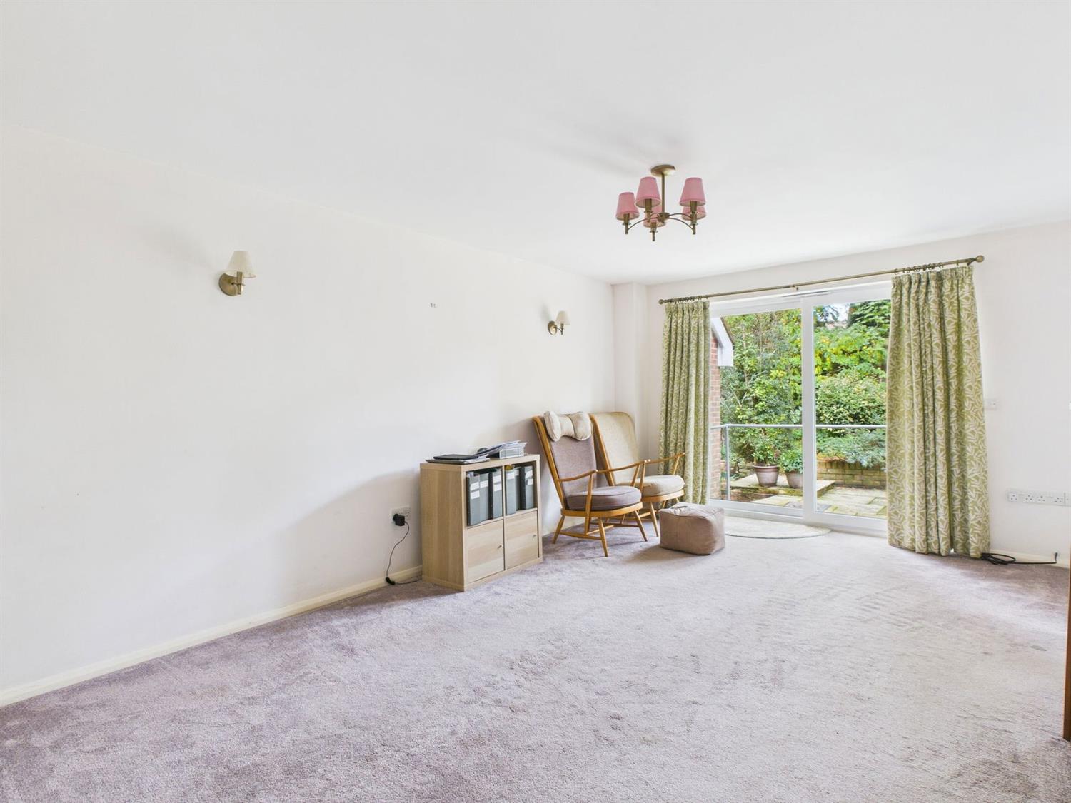 With sliding double glazed door which leads out a patio area, television aerial point, radiator, emergency pull cord, two wall light points, door to the