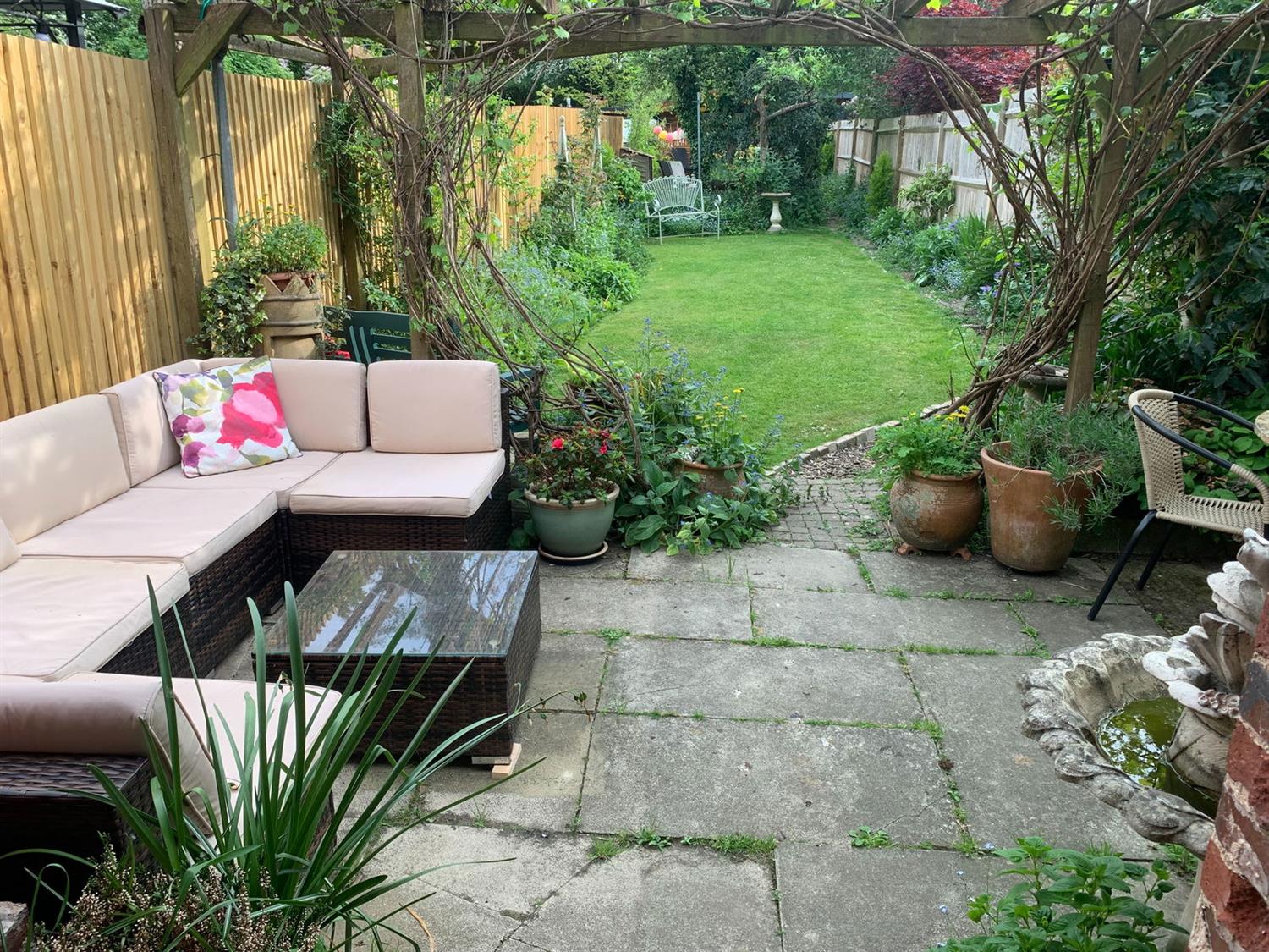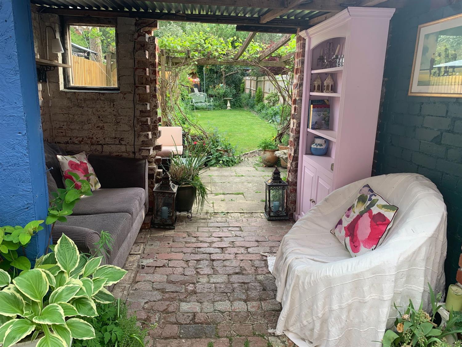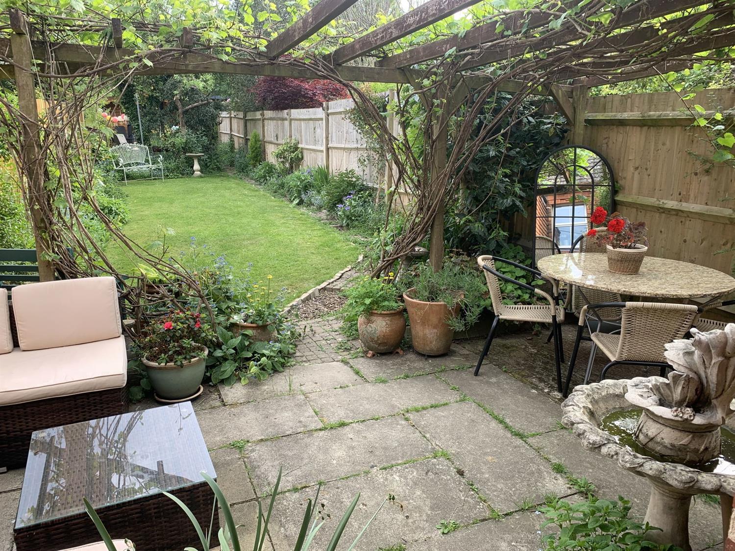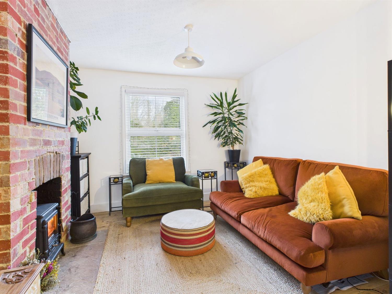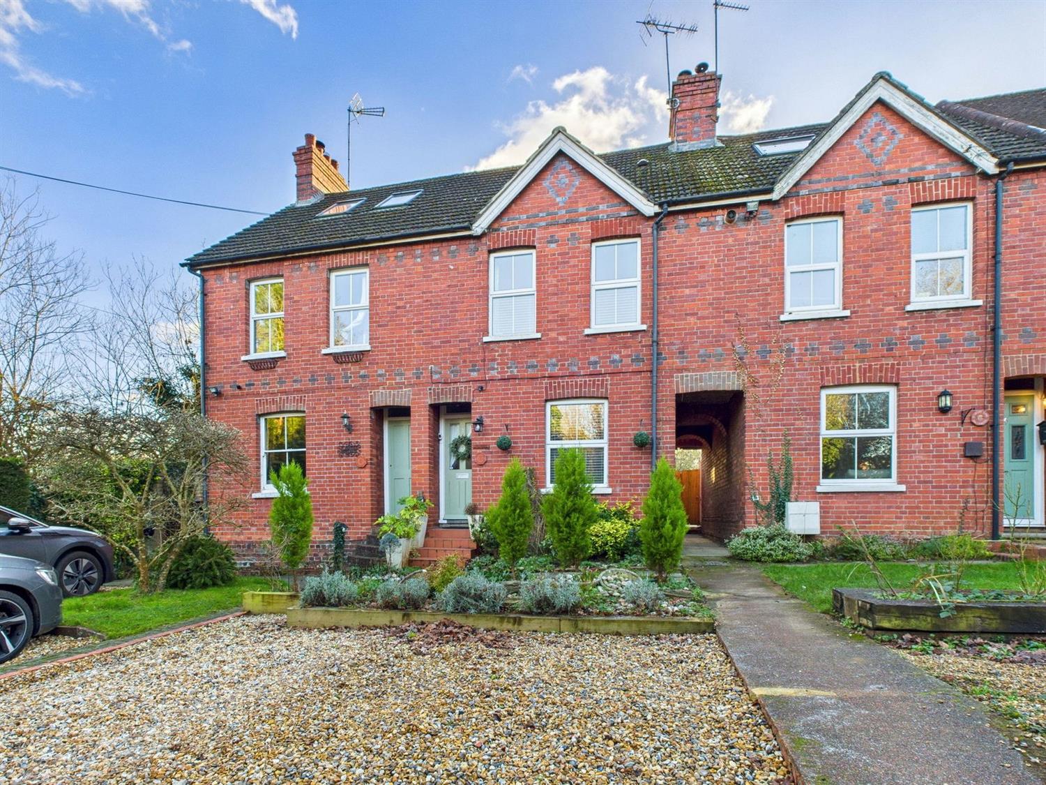 OUTSIDEAt the front of the property, a pebble hard standing provides comfortable parking for three/four small cars, side path and covered area with gated access to the side courtyard and to the rear where there is a long sunny South facing garden which is a true highlight especially in the summer when it's bursting with colour from established shrubs and scented roses. A characterful restored brick out building has been transformed into a cosy outdoor snug complete with seating under a vine covered pergola, perfect for Alfresco dining and entertaining. This property offers ample space for outdoor socialising as further down the garden past the apple and plum trees there is a beautiful designed area for entertaining around a firepit.