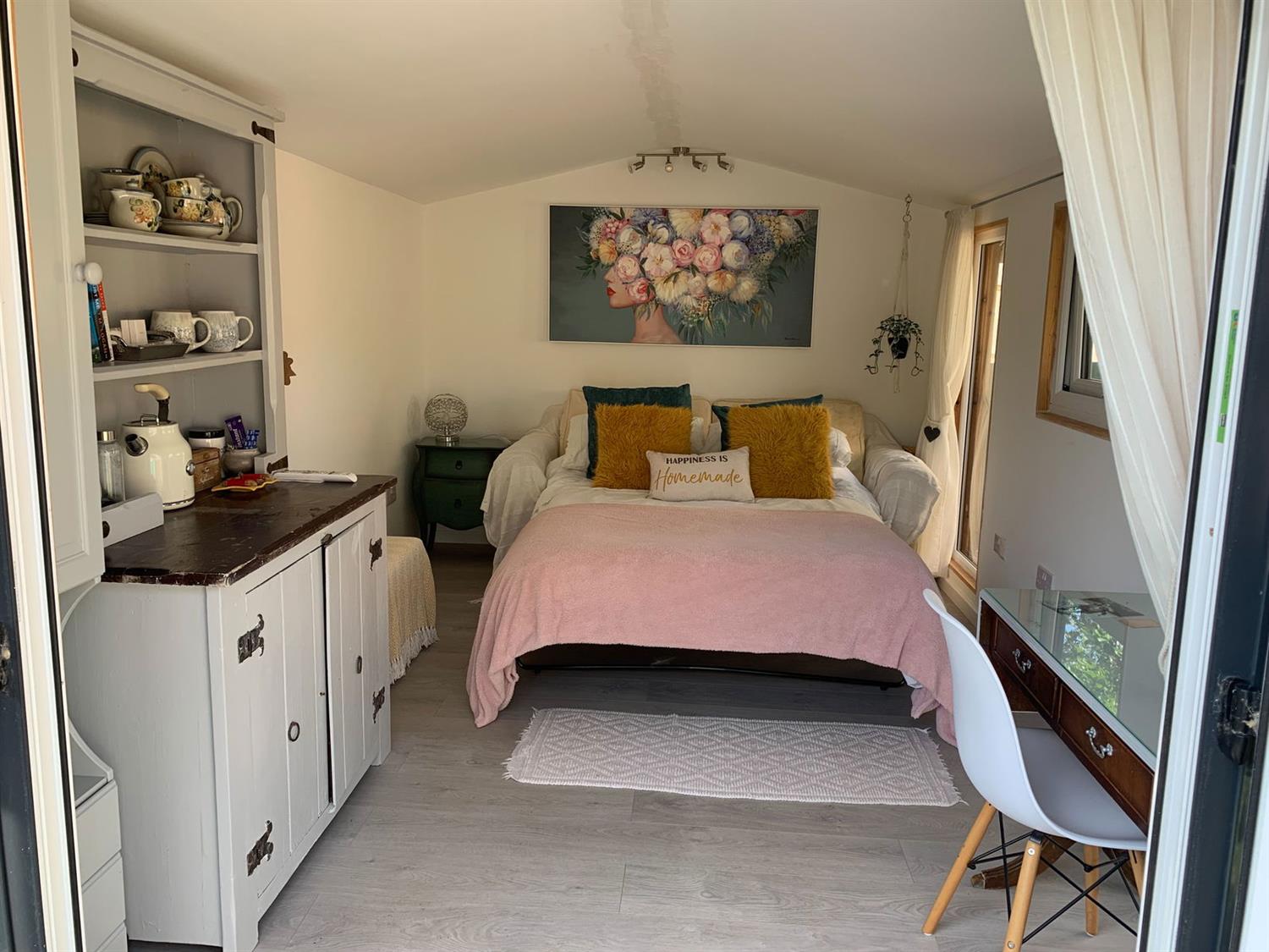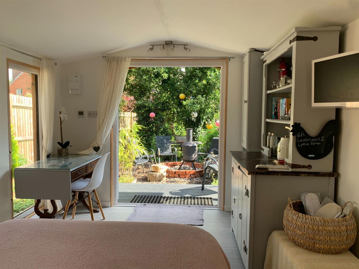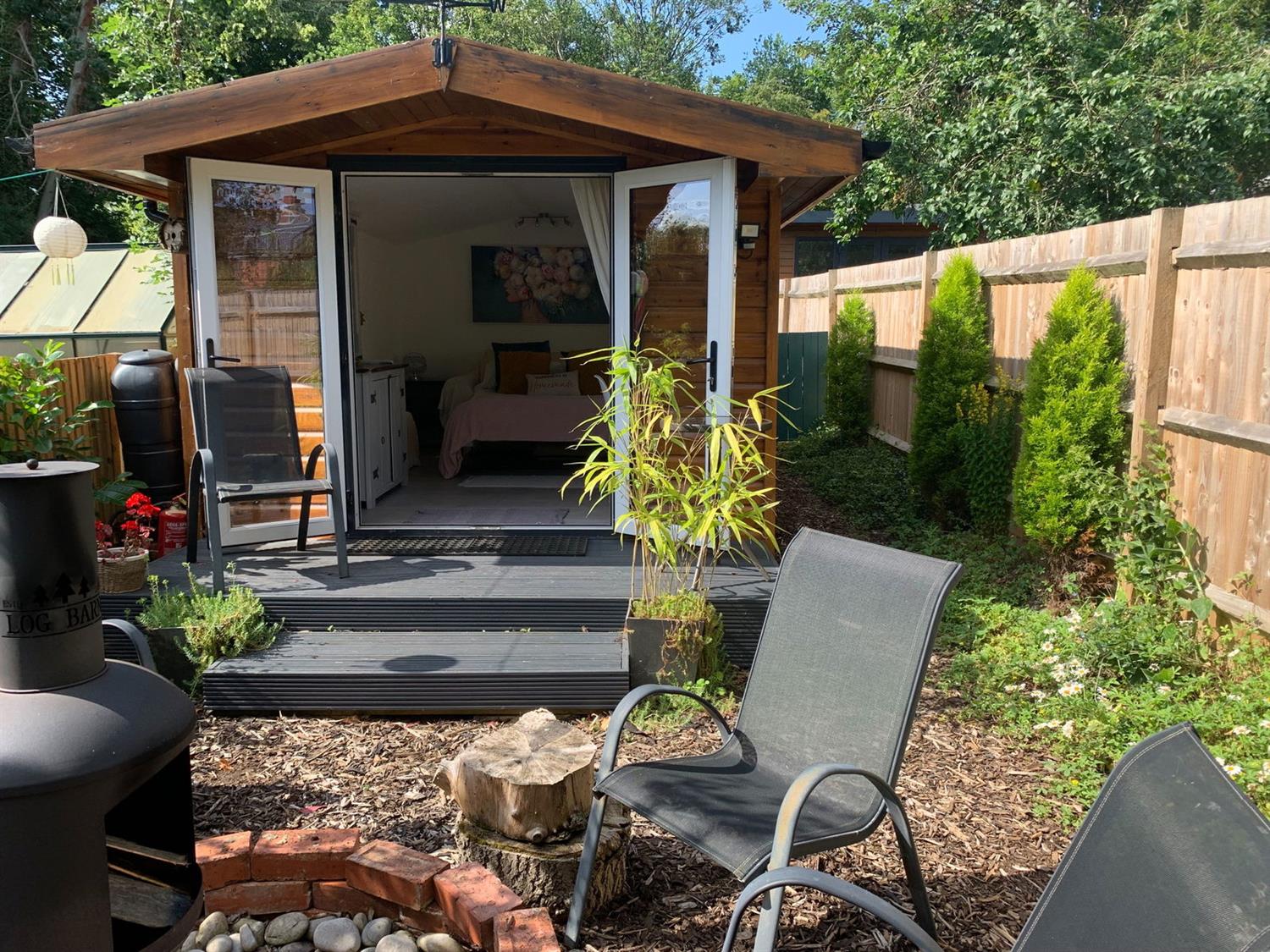 garden office room which complete with under floor heating and internet could also be used as a teenager den, sleepovers or a creative retreat. At the far end of this established cottage garden a large shed provides storage along with a greenhouse and beds area with strawberry and raspberry bushes with composting bins and water butts, all perfect for an aspiring veg grower.