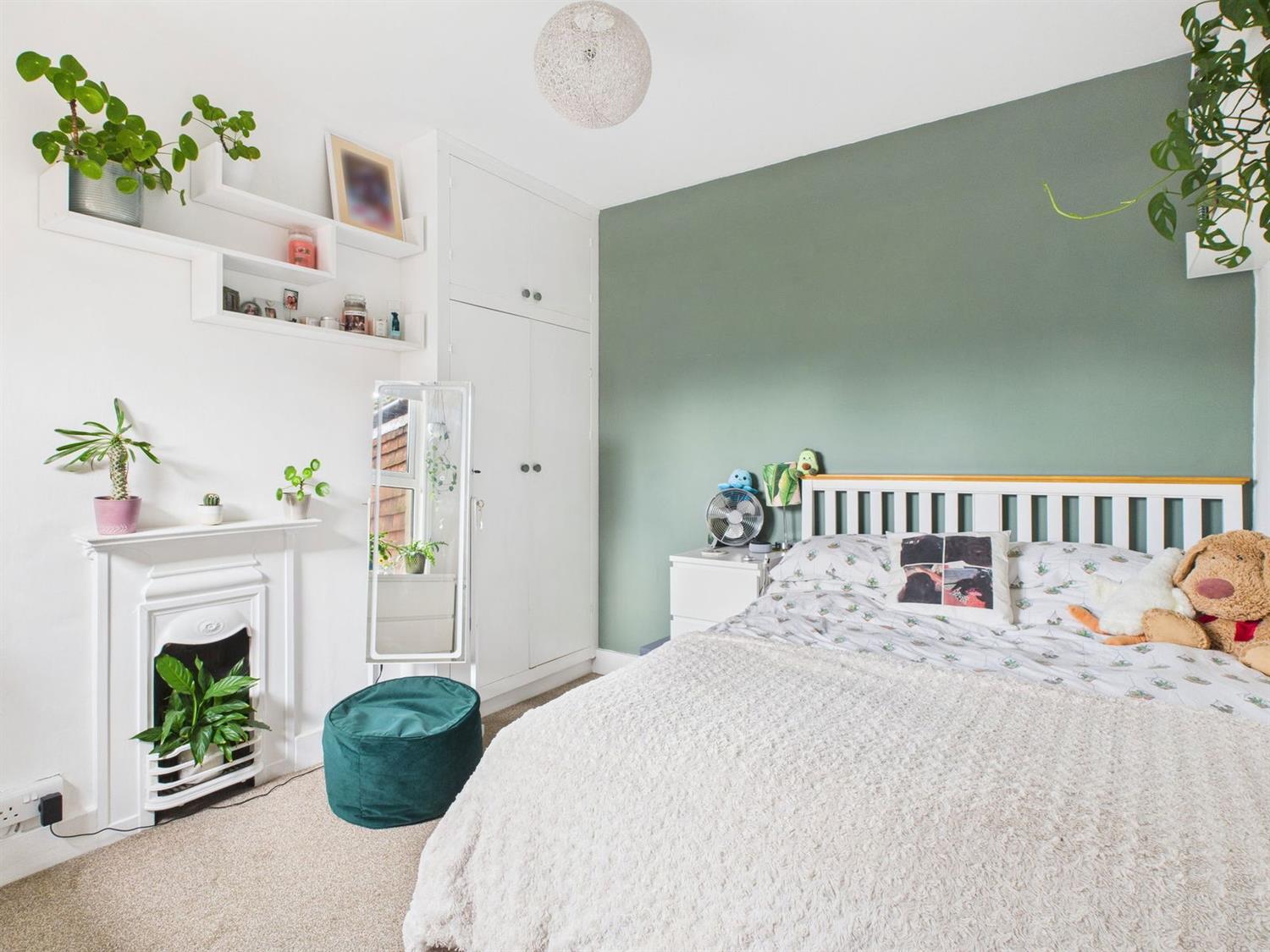 Bedroom 2Double glazed rear aspect, cast iron fireplace, double width wardrobe cupboard with overhead storage over to one side, radiator.