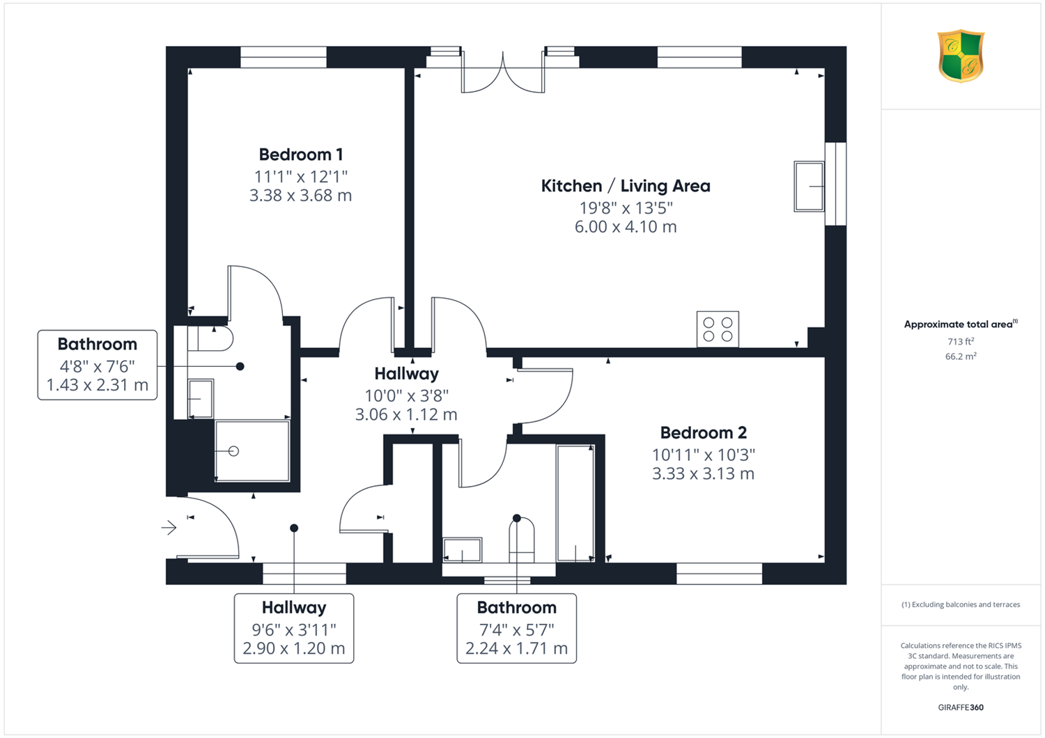 Courtney Green are pleased to offer for sale this modern and stylish first-floor flat situated on the popular and sought-after Kilnwood Vale development built by Messers Crest Nicholson to the highest of standards. The light and airy accommodation comprises a long hallway with built in cupboards, opening to a spacious open plan kitchen/living room with French doors to a Juliet balcony, a principal bedroom with built in wardrobes and luxury en-suite, a second double bedroom and modern fitted guest bathroom. Bricklayer Lane is tucked away along a quiet road and only a stone's throw away from a lake and stunning country walks. Adjacent to the apartment is a parking forecourt where there are two allocated parking spaces as well as visitors bays. The property benefits from a modern gas-fired heating system to radiators and is fully double glazed and the property is offered for sale with the benefit of no forward chain.