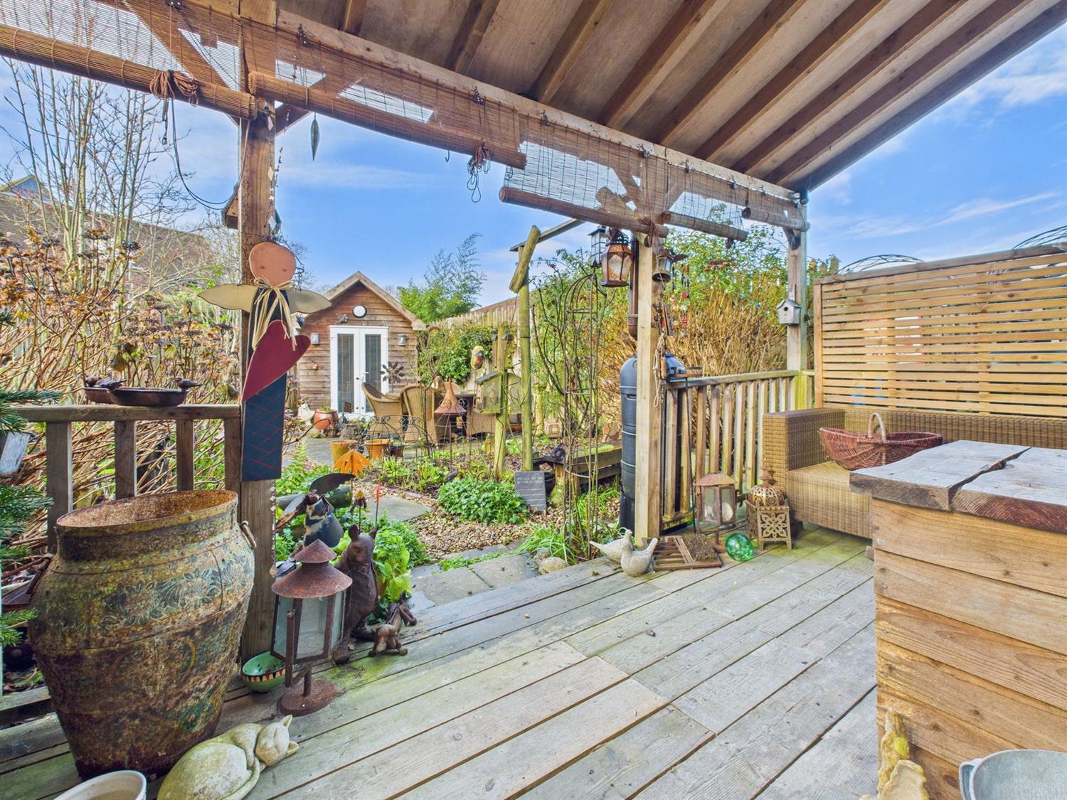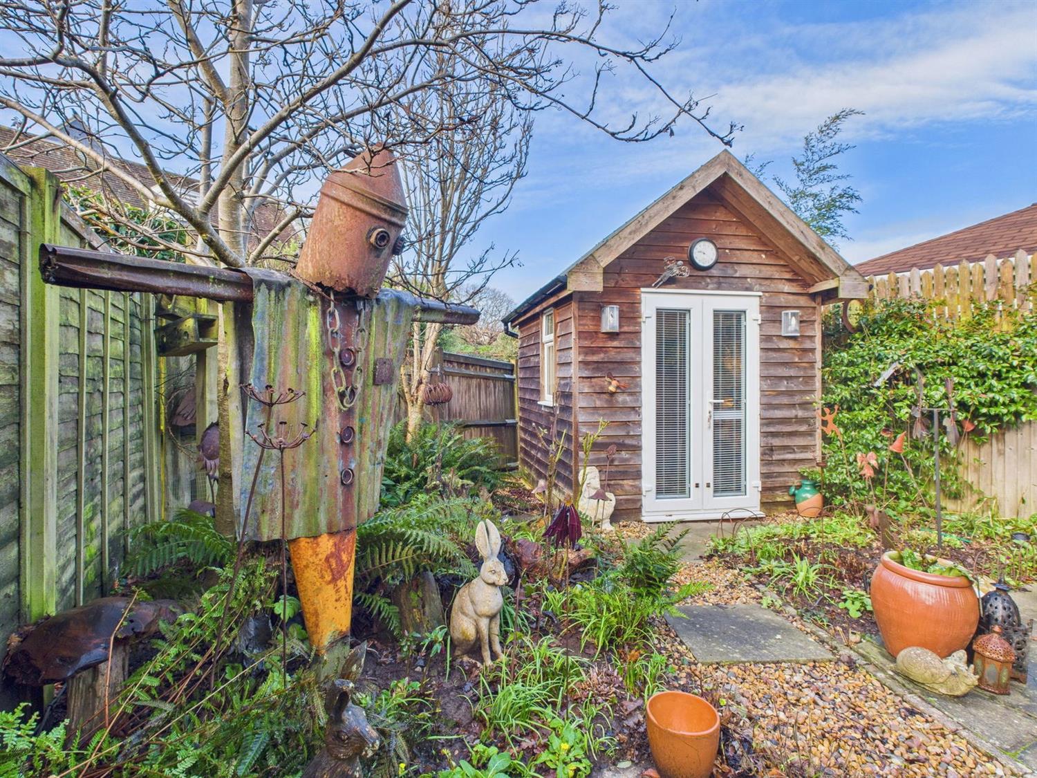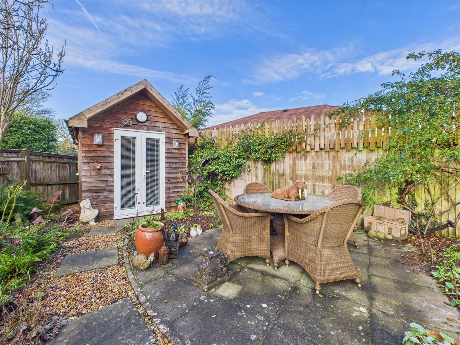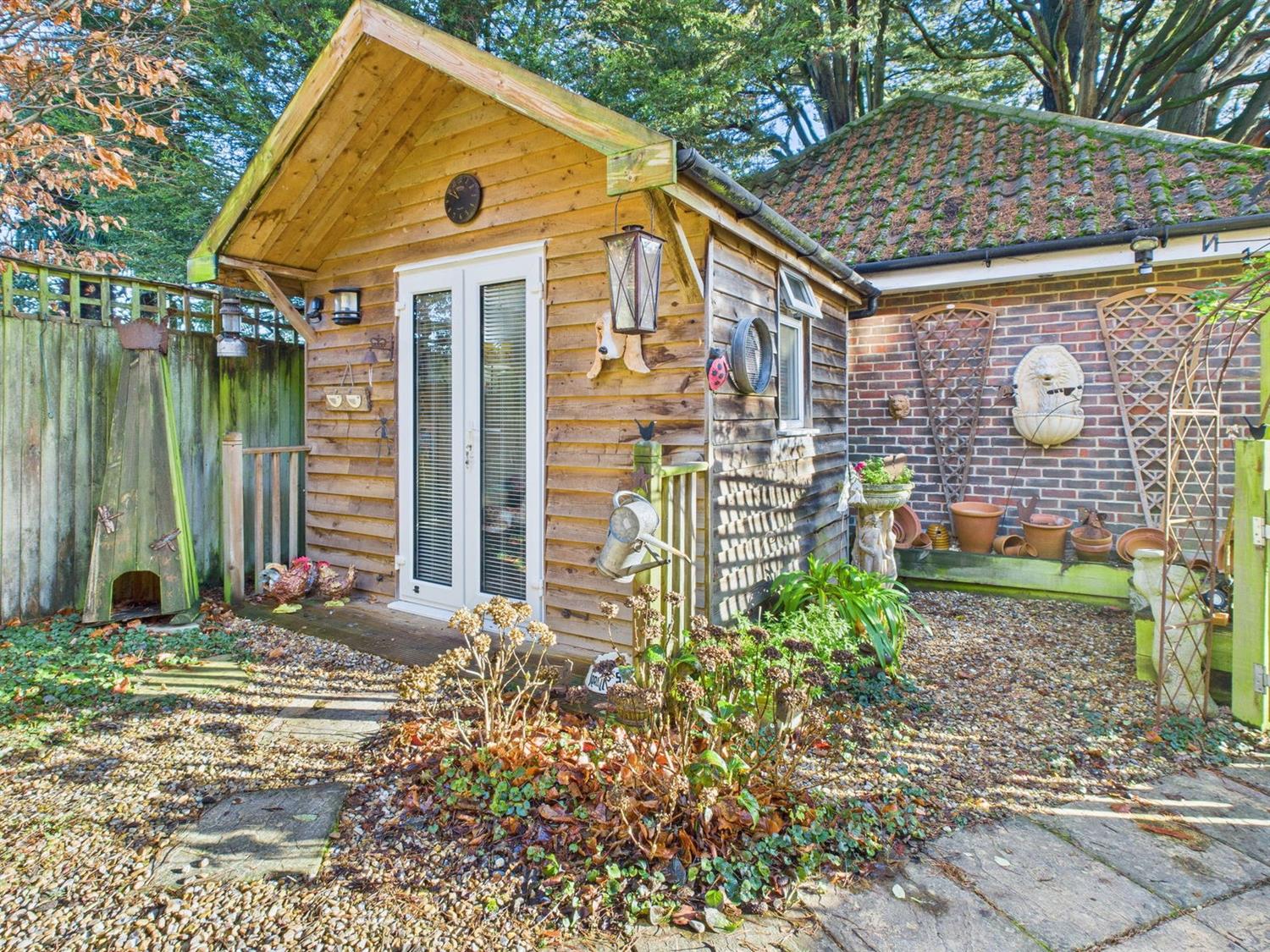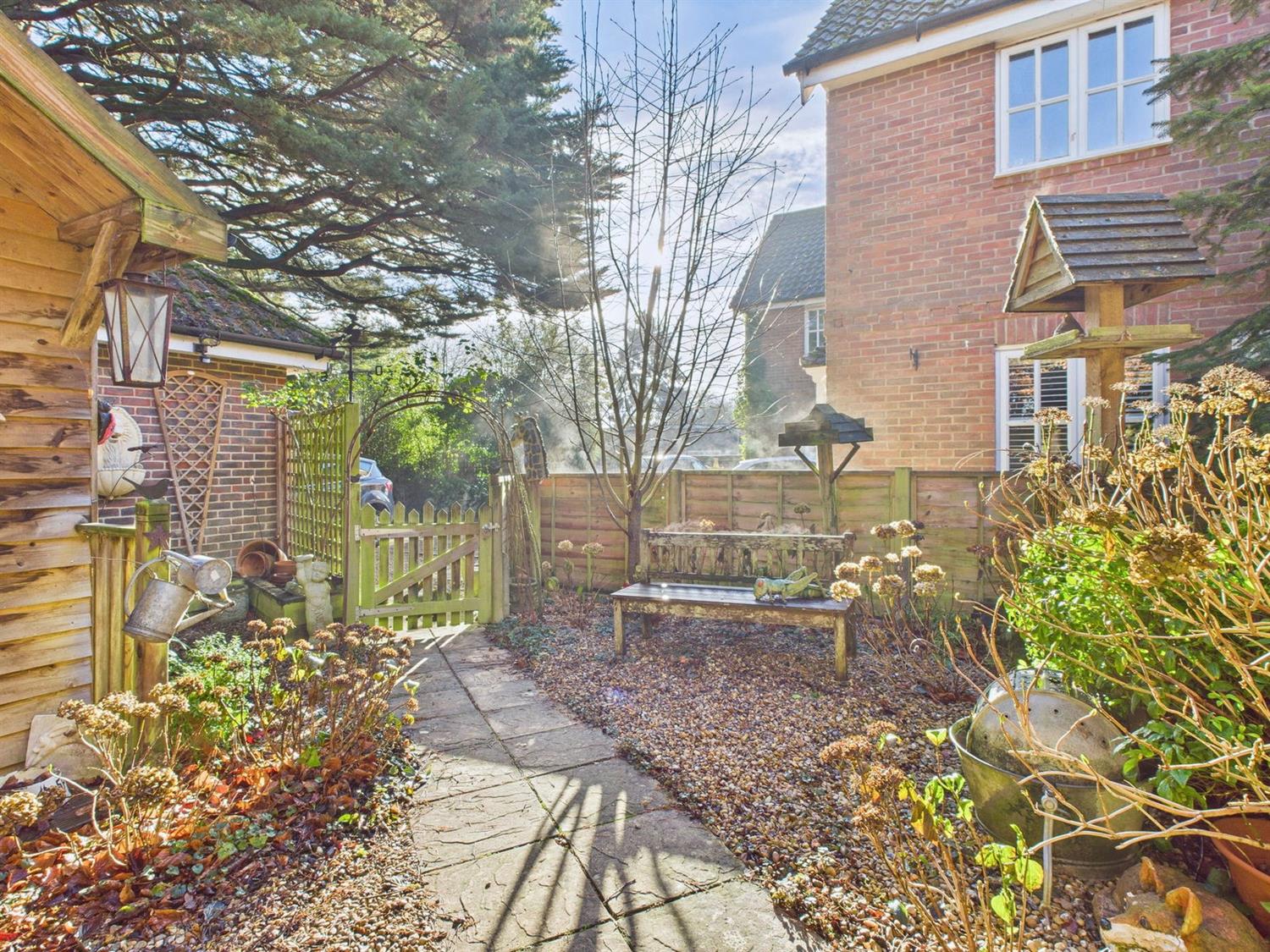 The Tree House is a charming three bedroom detached home tucked away at the bottom of a secluded, tree lined mews, in the heart of Ashington village. Built in the late 1990's, the property is one of just three individual homes that were built to exacting standards, and make up this exclusive development. The beautifully presented accommodation comprises a welcoming entrance hall, a wonderfully bright sitting room with attractive box bay window, a downstairs cloakroom, a dining room with door accessing the rear garden, and a kitchen which has a comprehensive range of integrated appliances makes up the ground floor. On the first floor there are three bedrooms, with the principal bedroom benefiting from fitted wardrobes and an ensuite shower room. There is a well appointed family bathroom, which completes the first floor. Outside, both the front and rear gardens, are a delight. Lovingly created and maintained over the current owners tenure there are a multitude of mature shrubs and tree's with cleverly thought out borders, landscaping, and seating areas, along with a covered veranda, which come together to create a highly individual oasis which can be enjoyed all year round, and enjoys unspoiled views of Ashington's 13th century church. In addition, there are two highly versatile garden studios with power and lighting, making perfect work from home spaces. A driveway provides parking, and gives access to the garage, which has power, lighting and an electric up-and-over door. Heating and hot water is provided by a gas fired boiler, and the property is double glazed throughout. Viewings are strongly recommended to appreciate this homes individual charm.