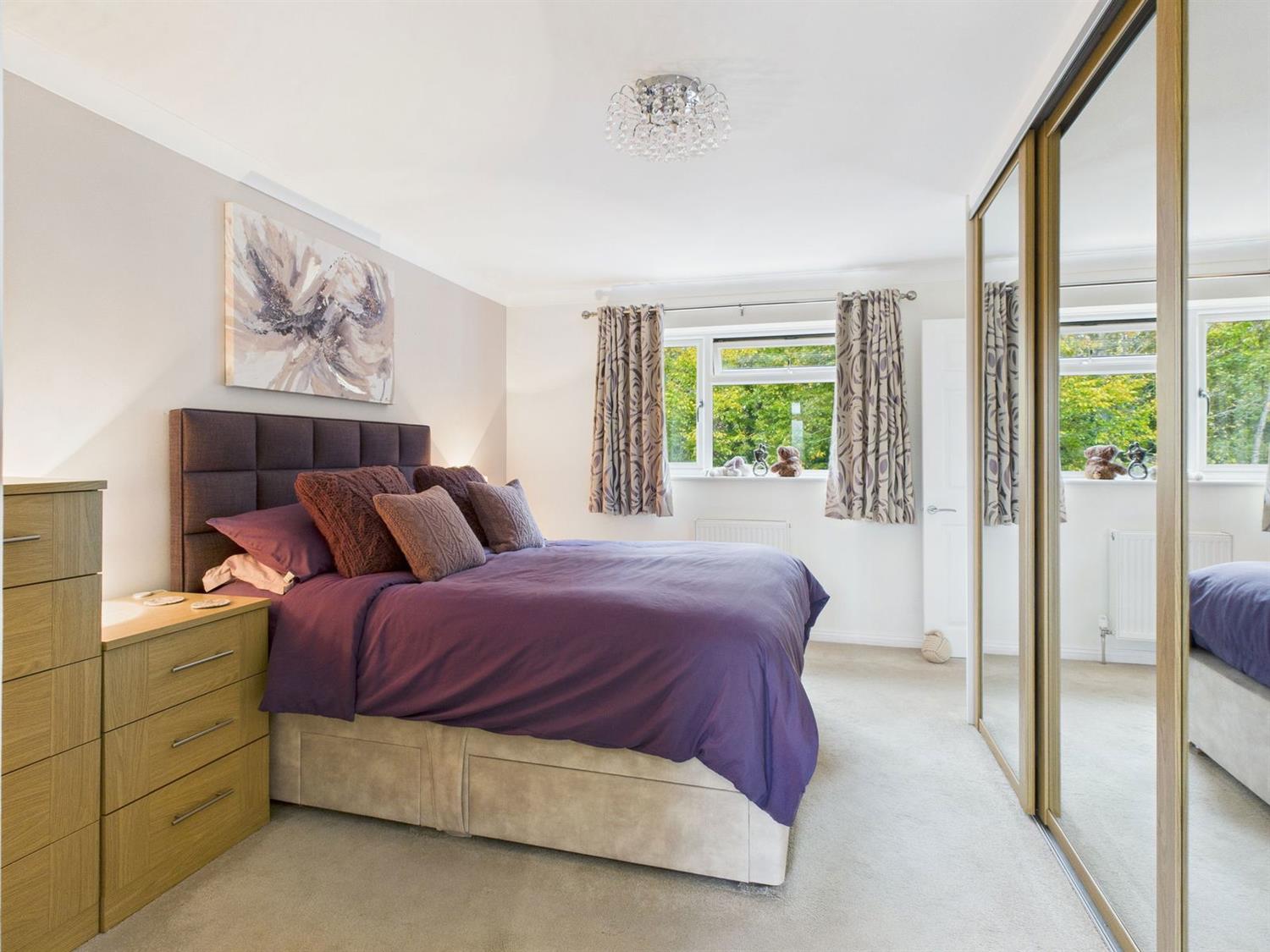 Principal BedroomDouble glazed front aspect overlooking wooded copse, radiator, light Oak effect framed mirrored wardrobe cupboards with sliding doors, door to