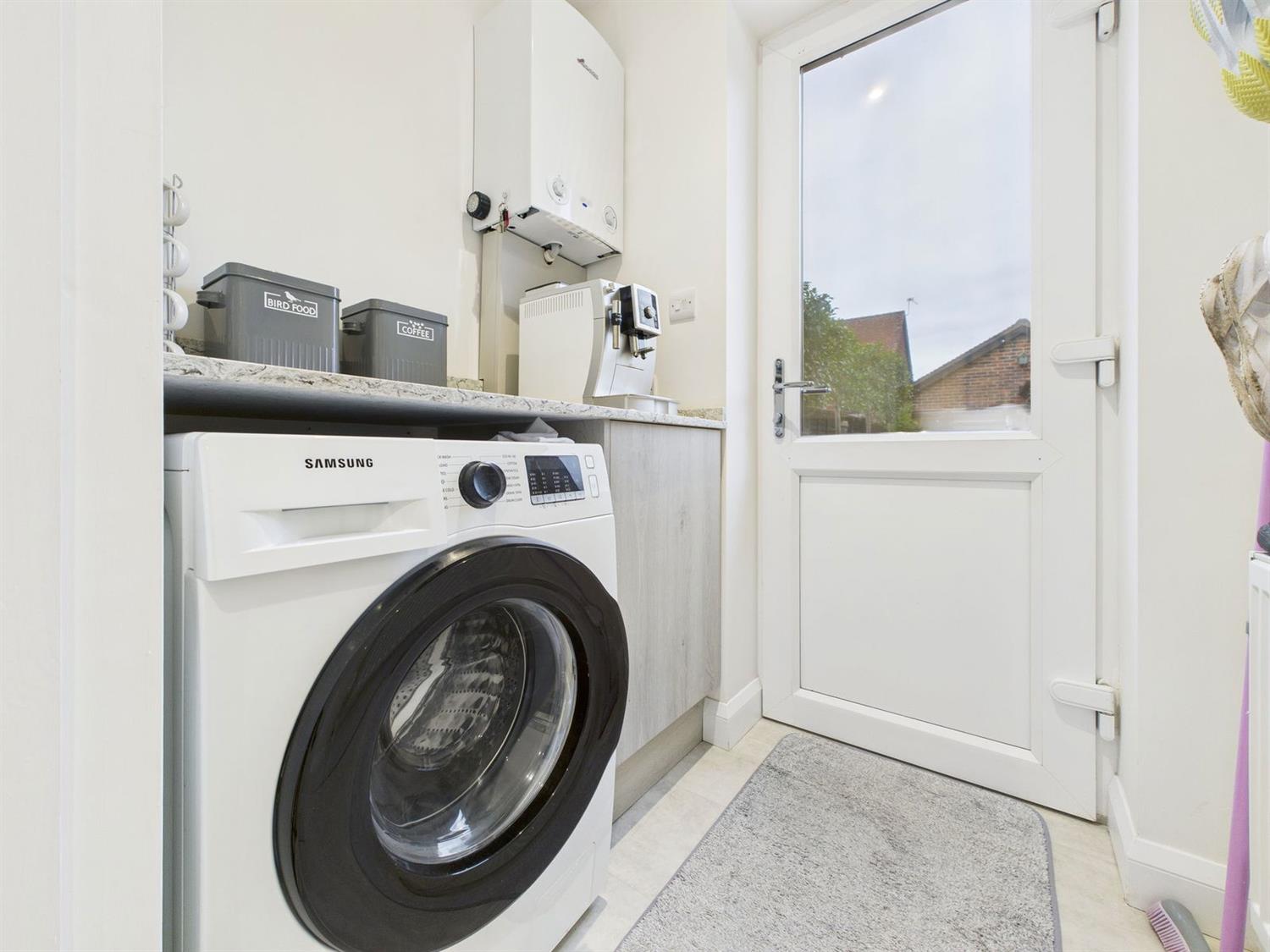 Utility RoomDouble glazed door to outside. Marble worktop surface with space and plumbing for washing machine under, wall mounted Worcester gas fired boiler, radiator.