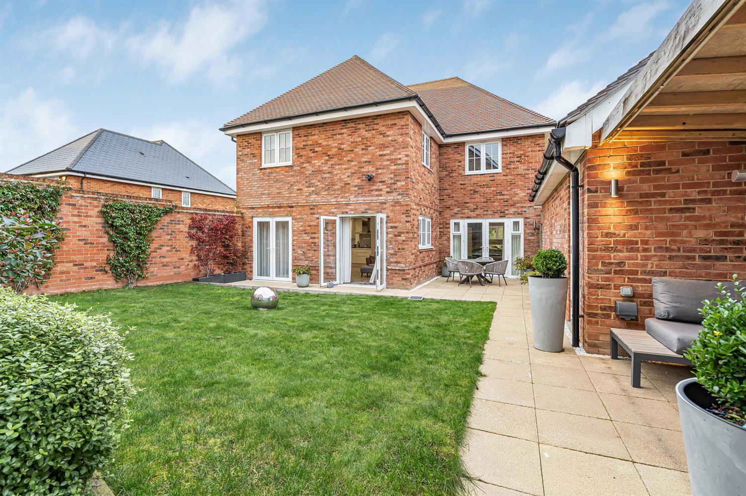 Courtney Green are delighted to bring to the market this executive, detached family home, presented immaculately throughout and conveniently located in the popular Solomon's Seal development in Broadbridge Heath village. Built by Bellway Homes in 2019 to their "The Jasmine" design, 38 Weston Avenue enjoys a most desirable position, being on the northern fringe of the development and fronting onto nothing but beautiful countryside, with direct access to idyllic public footpaths and bridleways beyond. Solomon's Seal is an exquisite collection of homes, which has been thoughtfully developed and meticulously maintained, offering a perfect blend of rural charm and modern convenience living. Upon entering the home, you are welcomed by a spacious entrance hall, which leads via double doors to a generously sized living room featuring a charming bay window and French doors that open directly onto the Garden. The true "heart of the home" is the expansive open-plan Kitchen, Dining, and Family Room. Designed for modern living and entertaining, this beautifully proportioned area is triple aspect and boasts two sets of French doors leading to the Garden. The high specification kitchen features integrated AEG appliances, such as an eye-level double oven, a five burner gas hob with hood extractor, quartz worktops and upstands and inset sink. There is a generously sized study, which again is dual aspect and enjoys the countryside views to the front, with a downstairs W.C completing the ground floor accommodation. On the first floor there are four double bedrooms, two of which feature luxury en-suite shower rooms, and the expansive principal bedroom also benefits from built-in floor-to-ceiling wardrobes. Completing the first floor is a contemporary family bathroom. The property is set on a secluded corner plot and features a sunny, south-westerly facing rear garden enclosed by an attractive red brick wall on one side. The garden is primarily laid with grass and includes a paved patio, a side access gate, direct access to the garage, and a wonderful covered entertaining space with lighting and heater. To the front of the property, a driveway provides off-road parking for two vehicles and leads to the garage. The front garden creates an attractive, welcoming frontage and the front garden wraps around the side of the house. Viewings are strongly recommended to appreciate this properties individual charm.