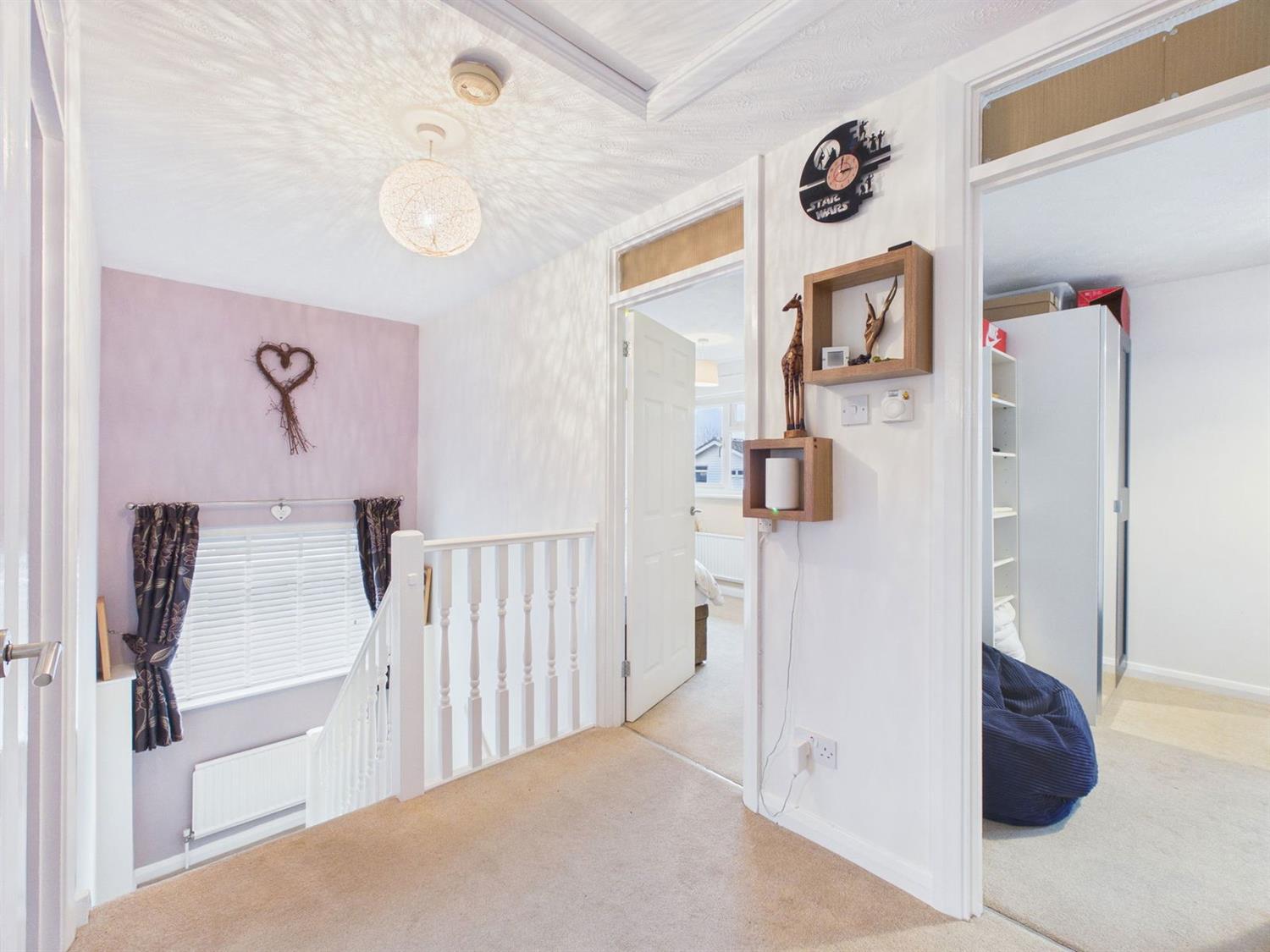 Stairs rise to the first floor landing, which enjoys a large side aspect window and includes an airing cupboard housing the hot water tank with shelving above. There is also a loft hatch providing access to the loft space which is boarded, and there are doors leading to all bedrooms and the family bathroom.