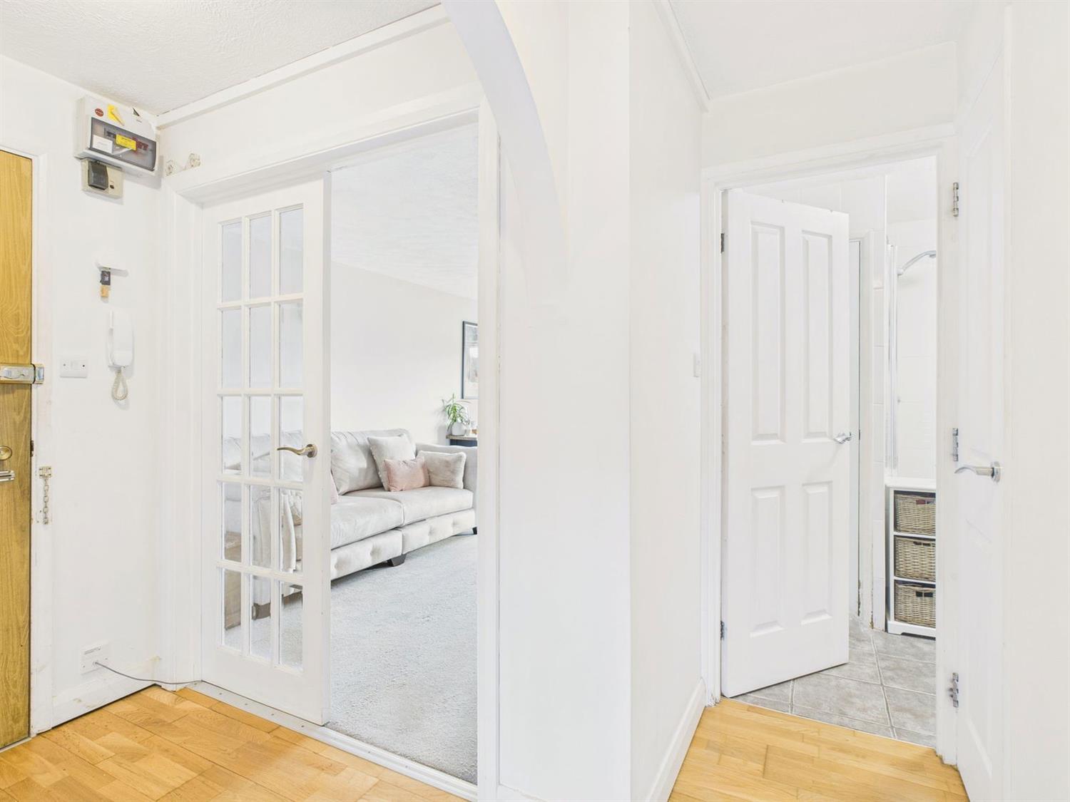 Entrance HallEntry phone, light wood flooring, arch display recess, storage cupboard with shelves. Multi glazed double glazed doors to: