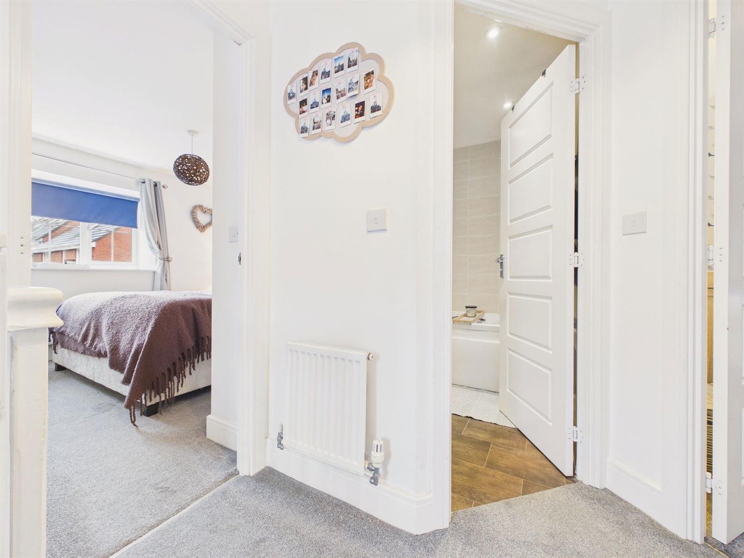 Stairs rise to the first floor landing where there is a side aspect window, radiator, loft hatch access accessing loft space and doors to all rooms.