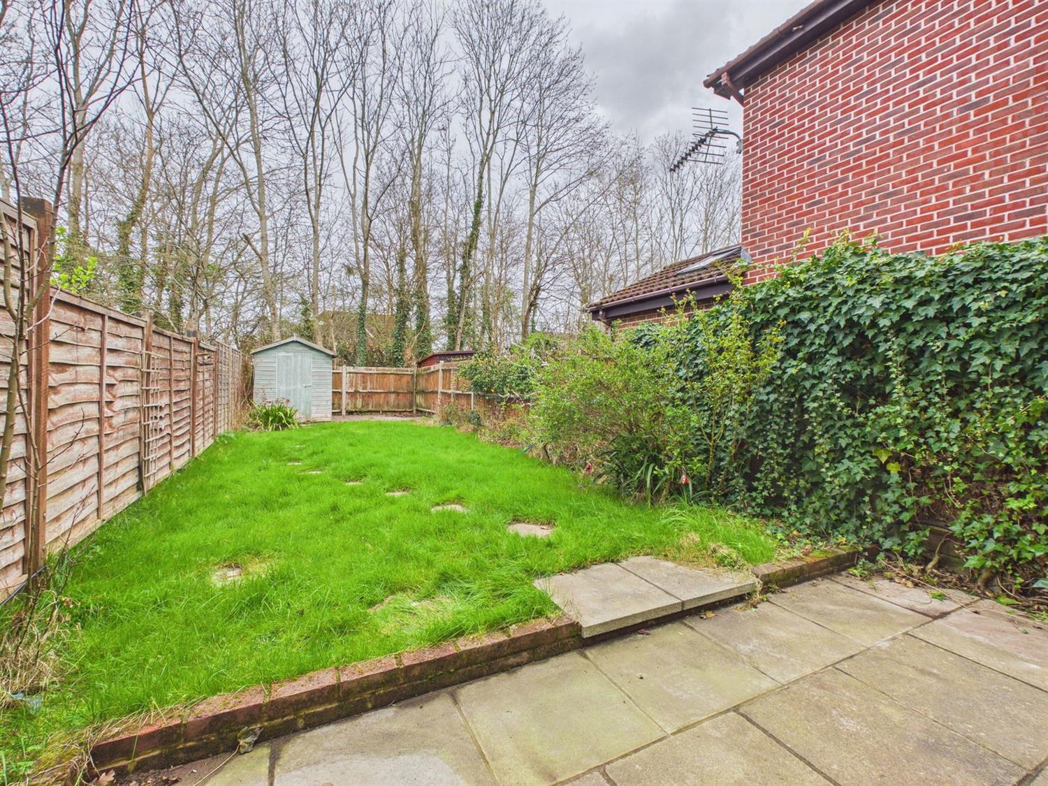 The rear garden extends to approximately 50 ft and is predominantly laid to lawn, with a paved patio adjoining the rear of the property. A stepping stone pathway leads to a further paved seating area at the far end, where there is a timber-built shed. The garden also enjoys a good degree of privacy.