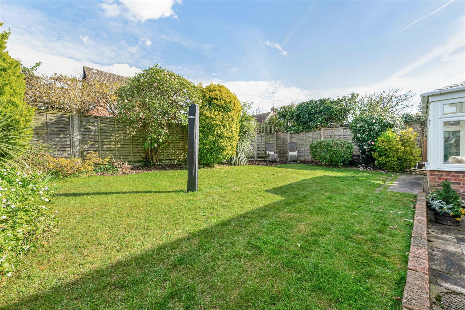 To the rear, the garden enjoys a good degree of privacy, and is mainly laid to lawn with an attractive red brick dwarf wall partitioning a paved seating area, which is perfect for outdoor entertaining. The lawn is bordered by established shrub and tree planting, and an area of bark chippings creates an additional seating area.