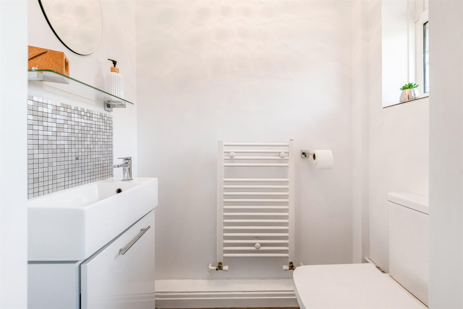 CloakroomComprising a low-level WC with dual flush, a vanity wash hand basin with mixer tap and storage beneath, tiled splashback, heated towel radiator, a front aspect obscured window, and a high level fuse board.