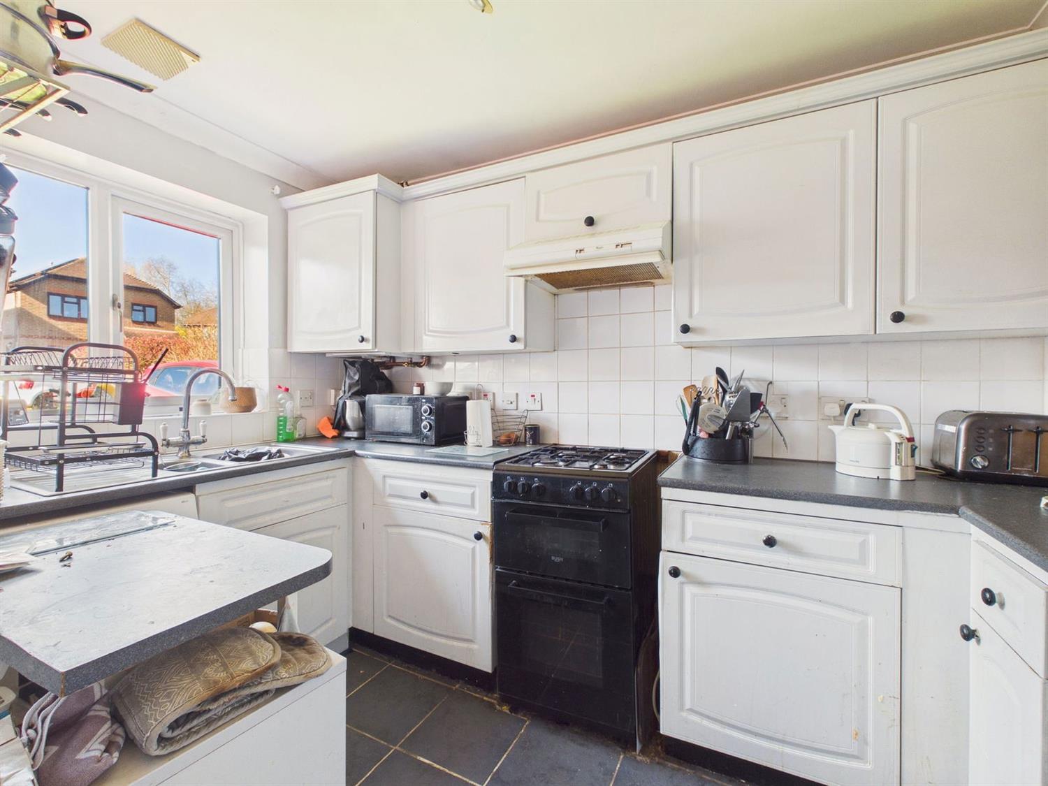 KitchenDouble glazed front aspect. Fitted with a rang of base and wall mounted cupboards and drawers in shaker style with complementing worktop surfaces incorporating a 1 1/2 bowl single drainer stainless steel sink with chromium monobloc tap, space and plumbing for washing machine, space for a gas cooker and fridge/freezer, tiled splashback and flooring, extractor fan, concealed Ideal gas fired boiler.