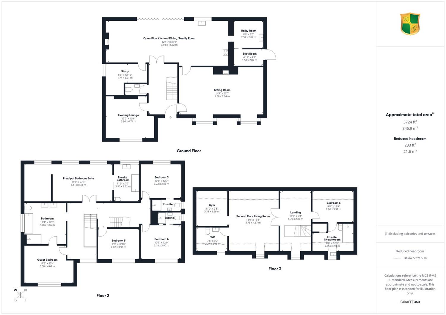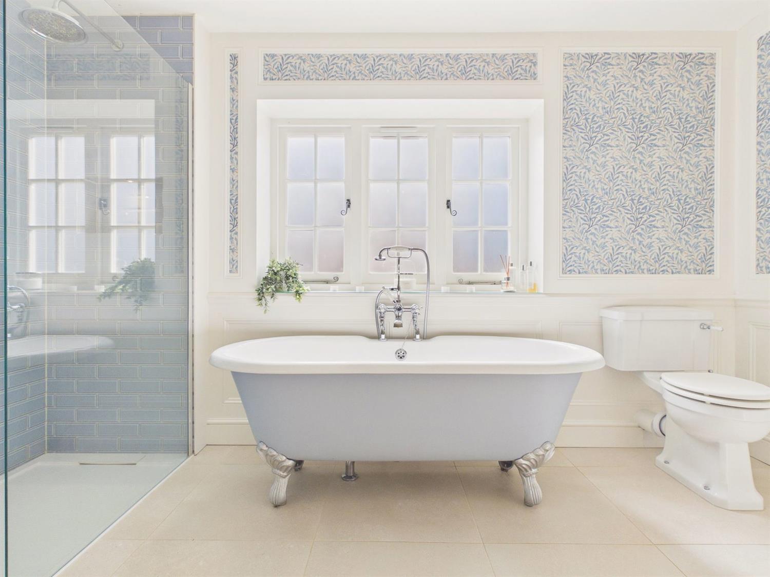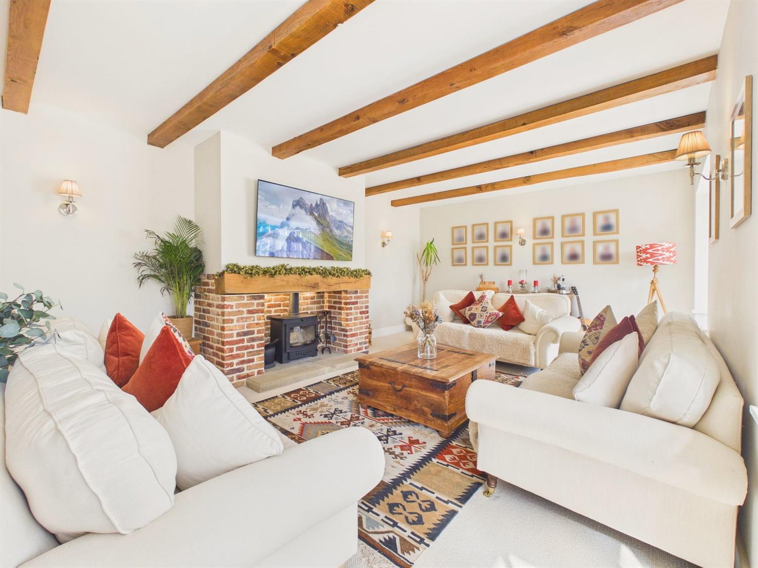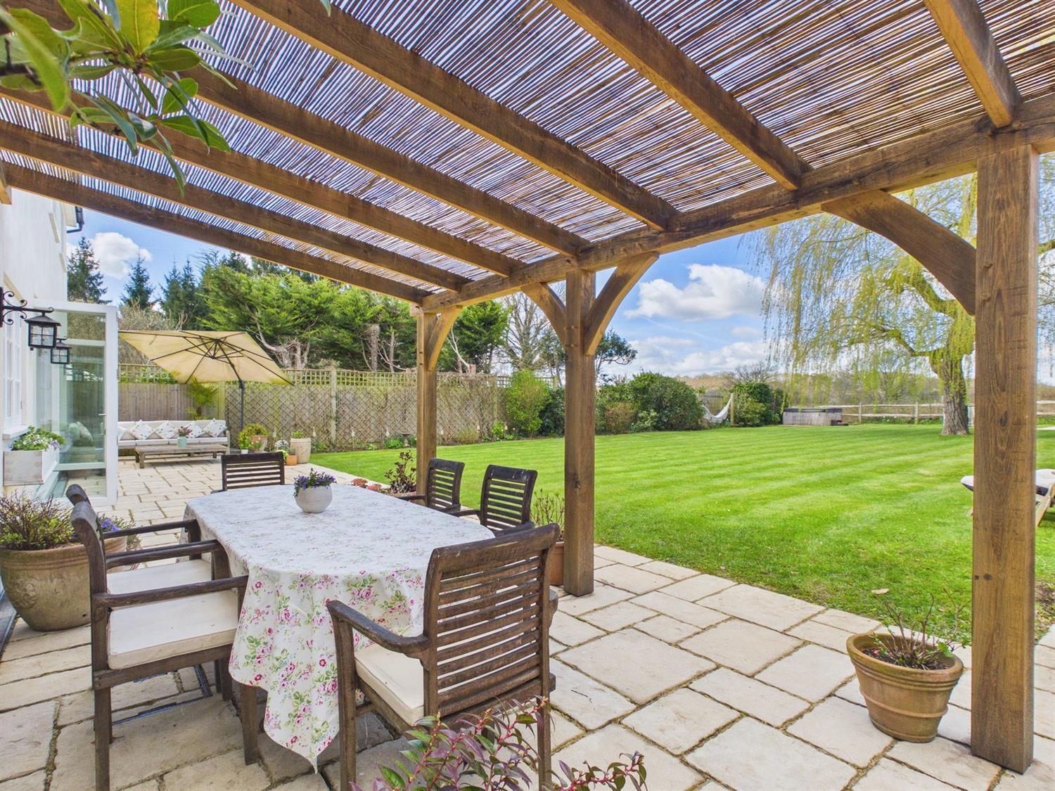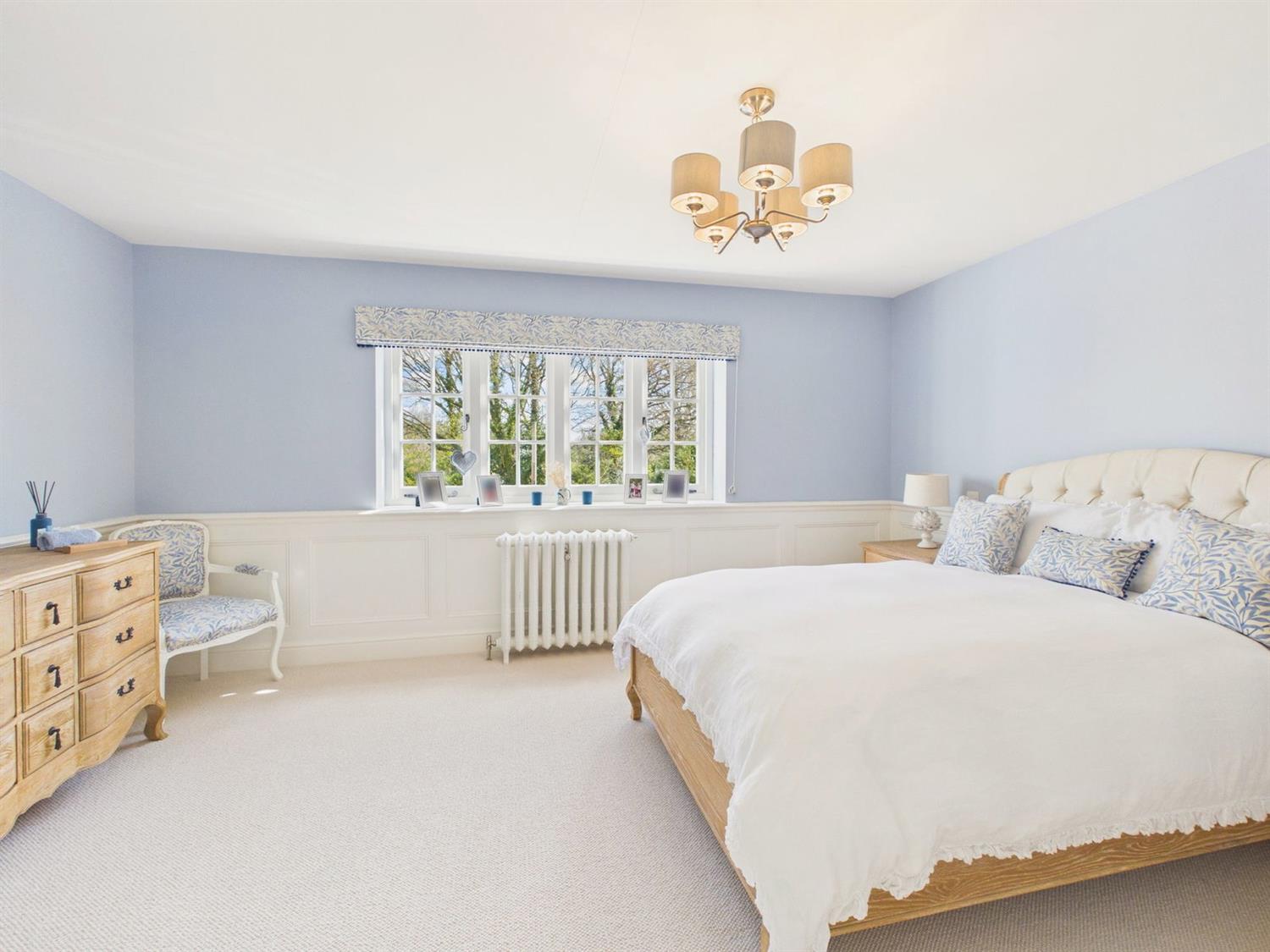 Originally a single-storey home, the property has been completely transformed into a substantial and highly versatile family home, with accommodation arranged over three floors and finished to an incredible standard throughout. Upon entering the home, an impressive entrance hall with herringbone block flooring opens through double doors which perfectly frame the outstanding southerly views beyond, while the rear of the house opens beautifully via almost 5m of folding doors from the open-plan kitchen, seamlessly connecting the interior with the garden. This open plan room spans nearly the entire width of the home with a snug, large dining space, and bespoke in-frame farmhouse style kitchen, whilst a practical utility and boot room keep the unsightly workings of a family home out of view. The formal sitting room is flooded with natural light from two large box bay windows, whilst exposed timber ceiling joists and a stunning exposed brick central inglenook fireplace with oak mantle and wood burning stove give a sense of character in this newly created home. Completing the ground floor is an evening lounge, downstairs cloakroom and study. On the first floor there is a fabulous principal bedroom suite with dressing room and ensuite bathroom, a guest bedroom with access to the first-floor bathroom suite, two further ensuite bedrooms, and the fifth bedroom. The top floor is highly versatile and provides an ideal self-contained space for guests, a live in nanny, or older children. With a bright landing/study space, a lounge/games room, an ensuite bedroom, a further bedroom/gym, and a w.c which could become a further bathroom, or sauna as the current owners had planned.
