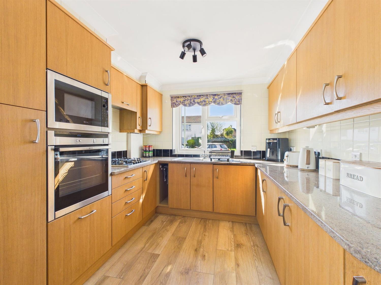 KitchenThe kitchen is well-appointed with a range of eye and base level cabinets and drawers, complemented by contrasting worktops over. Integrated appliances include a high-level Neff electric oven with Neff microwave above, a four-burner gas hob with concealed extractor, an integrated Neff washing machine, and a low-level fridge and freezer. Additional features include carousel corner cupboards, a stainless steel sink with mixer tap, a front-aspect window, a side-aspect window, a fitted bench seat, and a vertical radiator.