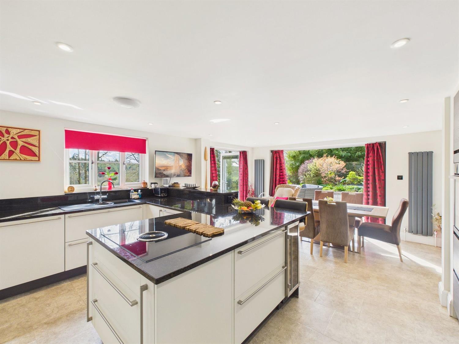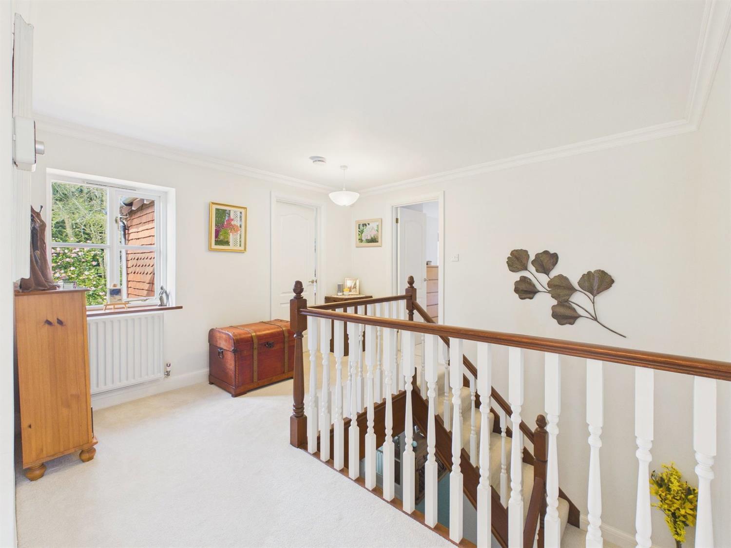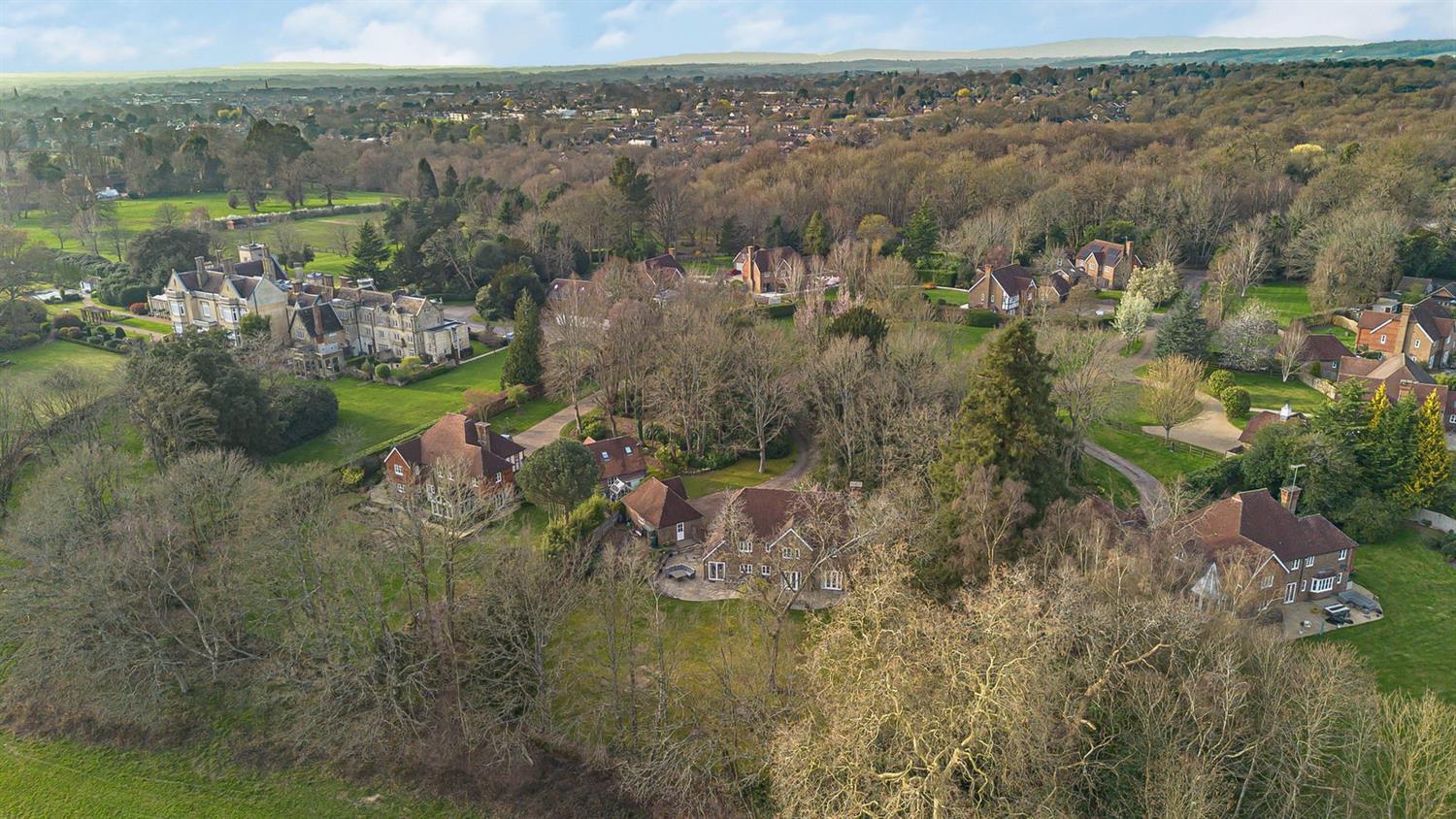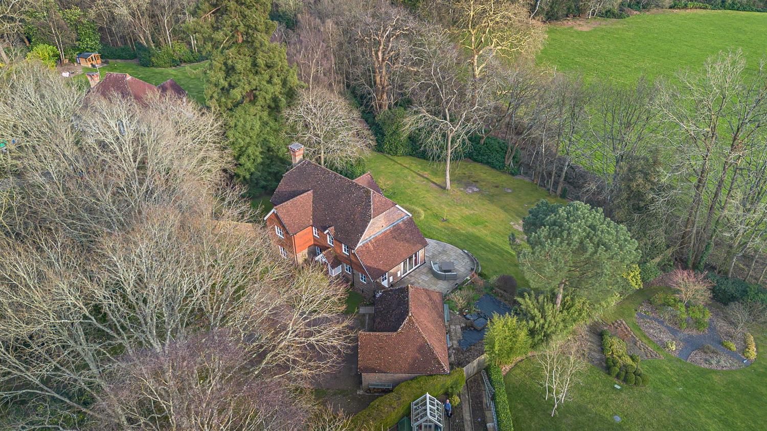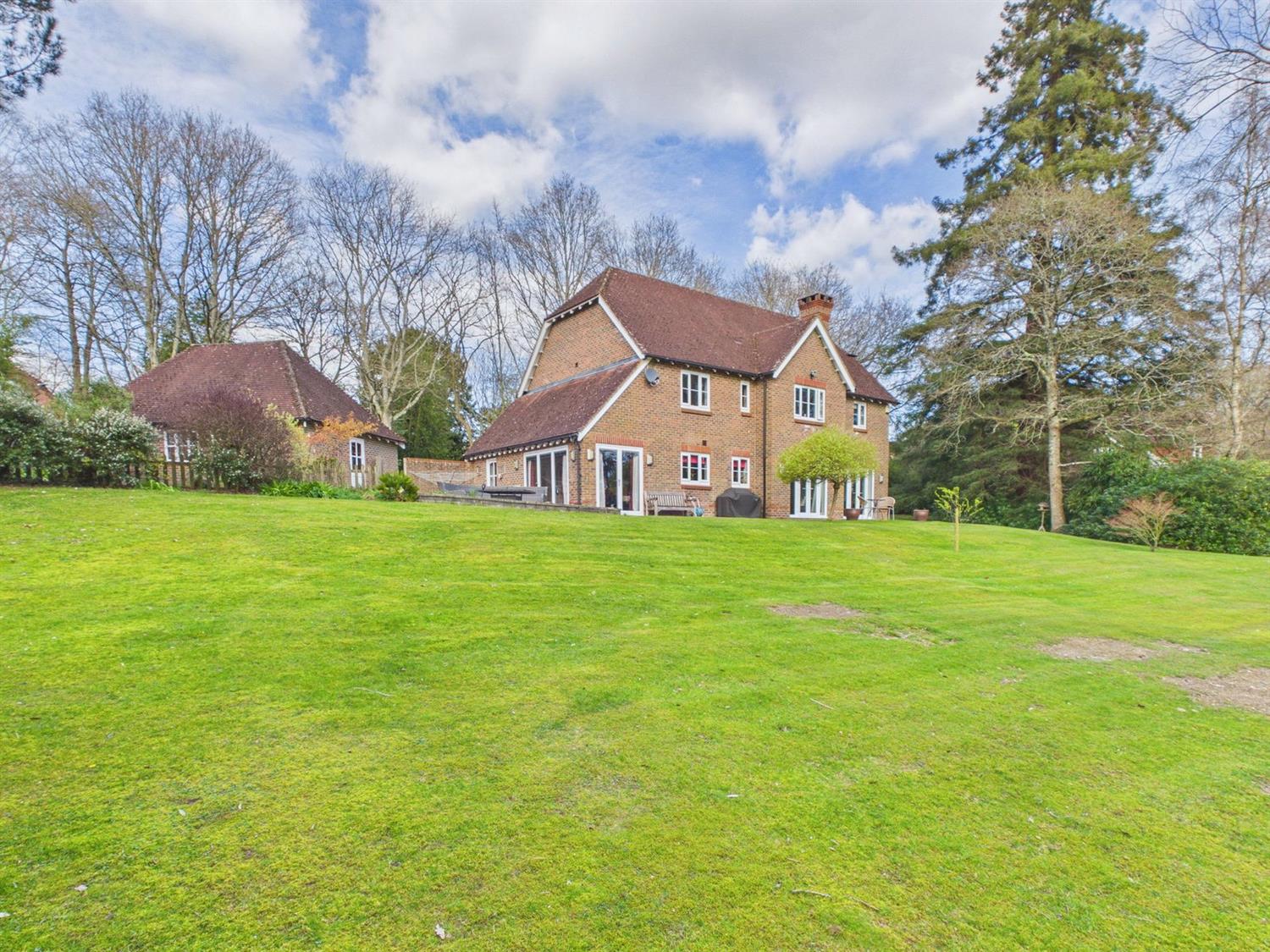 A beautifully refurbished five bedroom, five bathroom country home, occupying an exceptional plot of approximately one acre, set within the exclusive Copperfields development on the former Coolhurst Estate, to the south east of Horsham and bordering the southern edge of St. Leonard’s Forest. Built in 1996 by esteemed housebuilder Hill Reed Homes to an exacting standard, Copperfields comprises just ten individual homes, each sitting within generous grounds of around an acre. Only two properties of this particular design were constructed, "Sleepy Hollow" having one of the largest plots, and with just three resales having taken place since the development was built, this represents a genuine once-in-a-decade opportunity. The house comes to the market for the first time since it was built and has been subject to a comprehensive schedule of works in recent years, creating a superbly appointed modern home that is ready to be enjoyed by its next owner. Positioned at the very end of this private development, the house enjoys a particularly peaceful setting and benefits from elevated and unspoilt southerly views across parkland, vineyard and a lake of the River Arun beyond. The ground floor accommodation comprises a welcoming entrance hall, a triple aspect sitting room with inglenook fireplace and French doors to the rear garden, a separate family room, a study overlooking the tree-lined frontage, a fabulously appointed kitchen which is open to a dining area with two sets of bifolding doors making it possible to open this space to the garden seamlessly. There is a separate utility room and a stylish downstairs shower room which complete the ground floor. On the first floor there is a bright galleried landing, a principal bedroom suite enjoying the far-reaching southerly views, with a walk-in dressing room and luxury ensuite shower room. There are two further guest bedrooms, each with ensuites. Two additional double bedrooms are served by a recently refitted family bathroom, and make up the first floor. Outside, the grounds are a standout feature of the property. The tree-lined driveway meanders through mature redwoods, rhododendrons and camellias, and opens to a private driveway which provides off-road parking for numerous vehicles and access to the detached triple garage. The gardens wrap around the house to give space at every border and enjoys an unspoilt, sunny southerly aspect to the rear, with a generous patio ideal for entertaining, areas laid to lawn, a timber summer house with decked seating, well-established rhododendrons, specimen trees, and a vegetable garden positioned just a few short steps from the kitchen. Despite its idyllic rural setting, the property is conveniently located just 1.5 miles from Horsham town centre, offering a rare combination of rural surroundings with excellent accessibility. Viewings are highly recommended to fully appreciate the quality of this exquisite Sussex home.