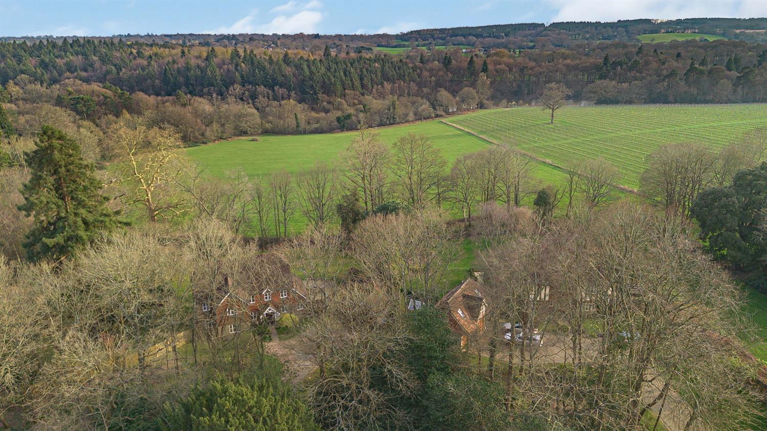 A beautifully refurbished five bed, five bath country home, set within a generous one-acre plot with a sunny southerly aspect, and enjoying far-reaching views over Coolhurst vineyard, parkland and the River Arun. Renovated to an exceptional standard throughout and positioned at the end of the exclusive Copperfields development just 1.5 miles walk from Horsham town.