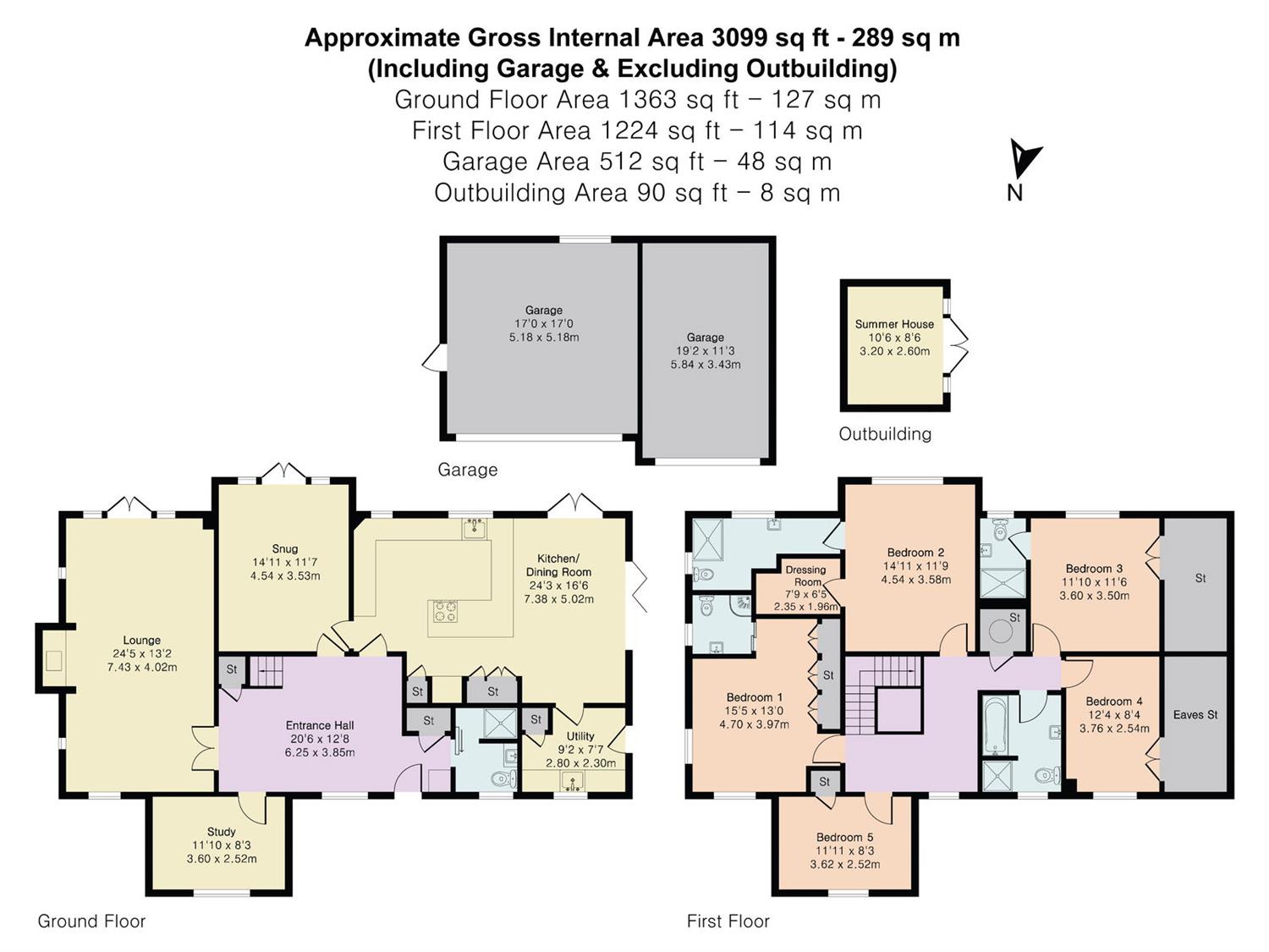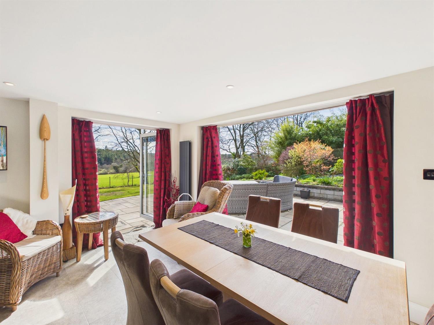 OutsideTo the front, the property is set back from the communal grounds of the development with a substantial frontage which is very well established and which opens to the private driveway flanked by timber posts and post and rail fencing to the border. A private driveway had space for numerous vehicles, as well as access to the detached triple garage. The gardens wrap around the house, providing space at every border and enjoying an unspoilt, sunny southerly aspect to the rear. A generous sandstone paved patio provides an ideal space for entertaining, and there are areas of lawn, a timber summer house with decked seating, well-established rhododendrons, and specimen trees, as well as a vegetable garden which is positioned discreetly just a few steps from the kitchen.