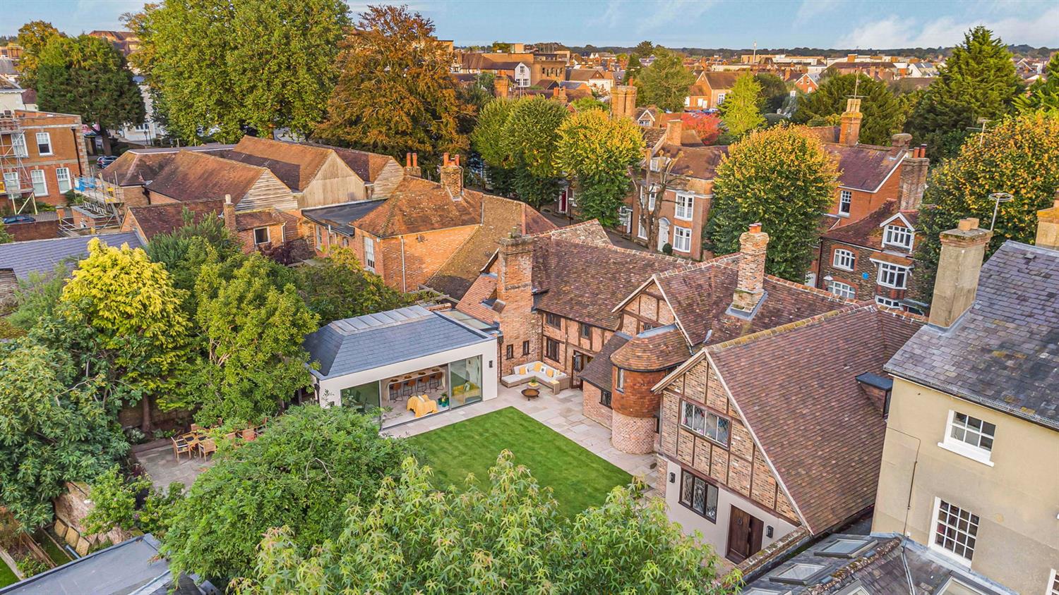 Price range £2.35m to £2.4m Minstrels is one of Horsham’s most historic and iconic homes, discreetly positioned along the picturesque Causeway in the town. Dating in part to circa 1390 and Grade II Listed, the property originated as a medieval hall house with cross wings, its significance reflected in a wealth of preserved architectural features including carved crown posts, exposed timbers, and an original Tudor stone fireplace.