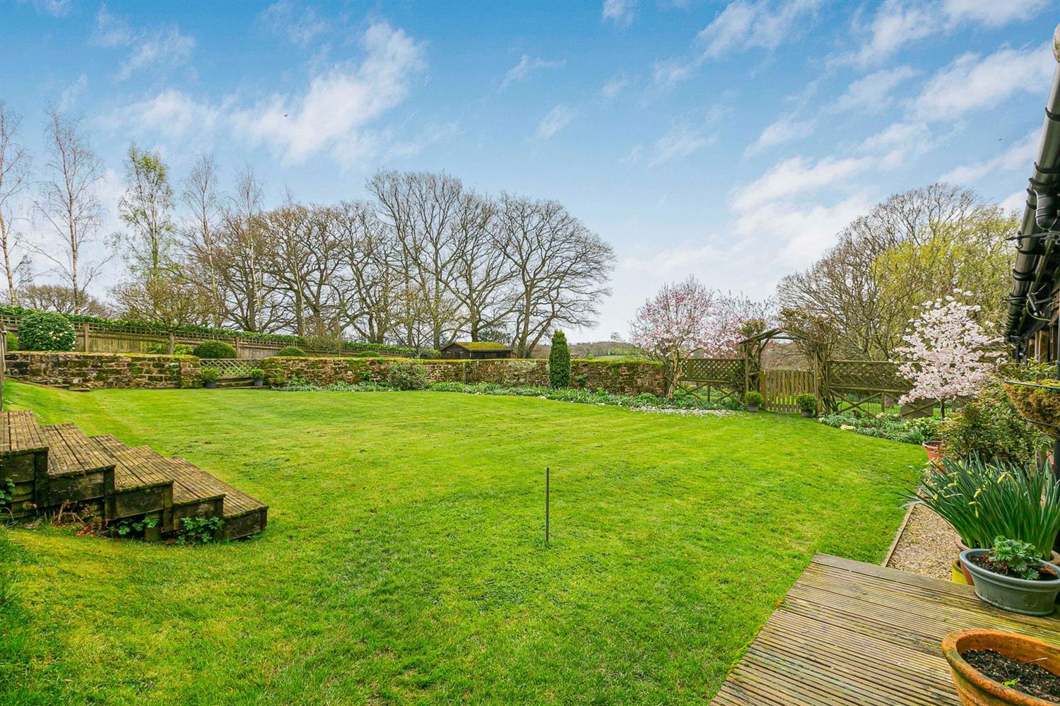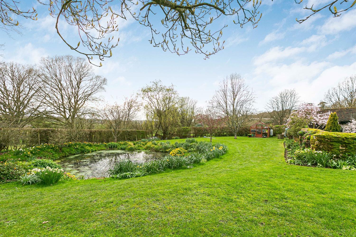 From the left-hand side, there is a wide area of lawn, which drops down past the walled garden and leads to the spectacular Dewpond, which is a highly attractive feature and adjacent there is a timber workshop and shed. The walled garden has lovely robust stone wall and consists of a lawn with a planting beds and can be accessed from both the main property and the outbuildings . There are steps which lead up to a raise deck with and providing access to the principal reception room and the. There are numerous outside, light points, water tap.