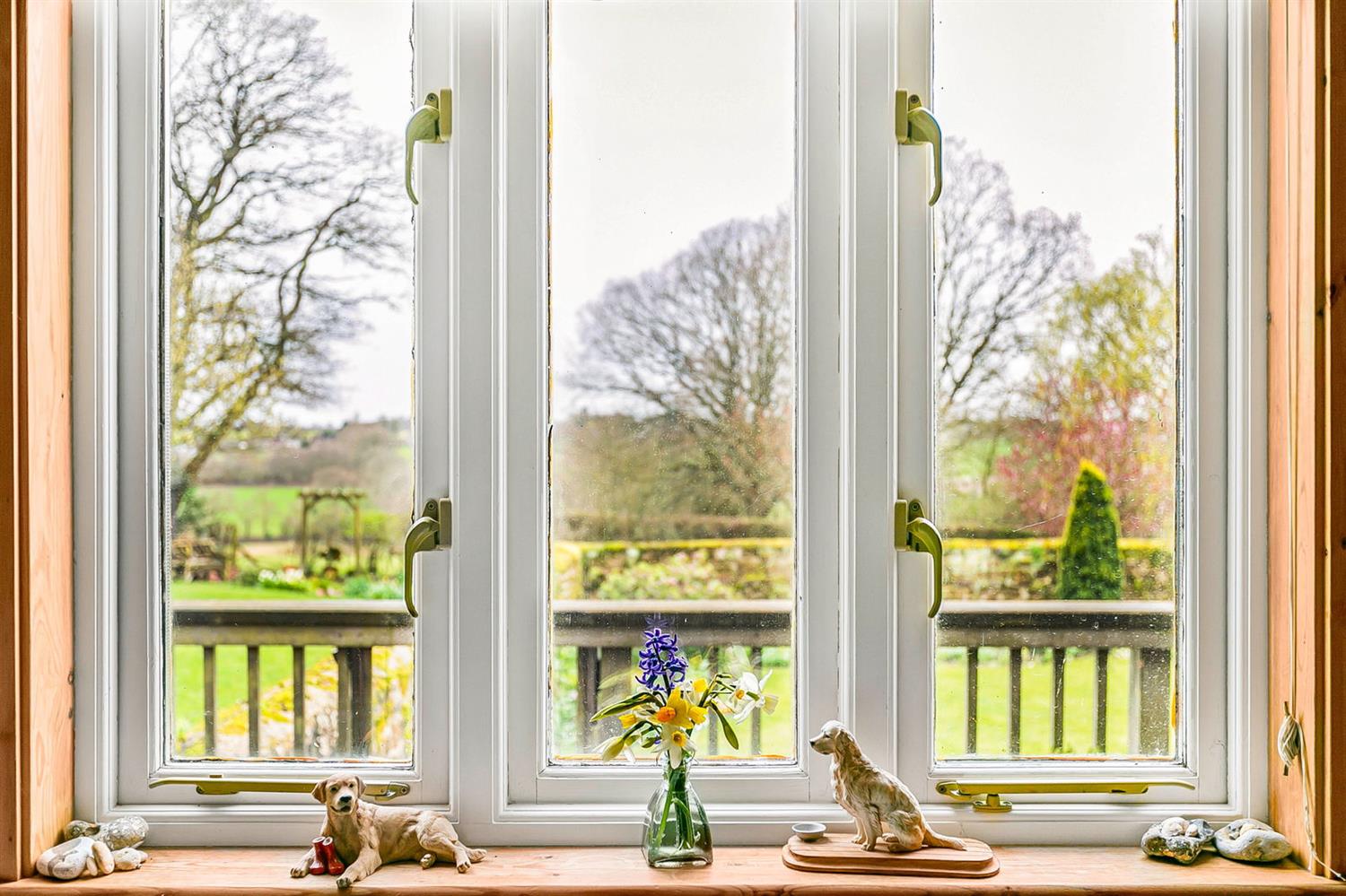 A highly individual and thoroughly well executed converted Barn, situated in an elevated rural location with distant South Westerly views. The array of character features includes artisan wood work with exposed ceiling timbers and joinery and lovely solid Sycamore braced studded doors throughout. Arranged over two floors, the flexible accommodation comprises a large vaulted entrance hall, laundry room, cloakroom, farmhouse kitchen, a stunning double height reception room. There are two ground floor bedrooms, one en-suite, while upstairs there are two further en-suite bedrooms. In addition, part of a perpendicular range of single-storey barns has been converted into a further bedroom or home office which also has its own en-suite shower room. There are further barns/stables which are used for storage and look out over a lovely walled garden. There are other highly attractive areas of the garden, including formal lawns, a vegetable plot and a Dewpond, all providing a haven for wildlife. The property has its own small lane access and extensive parking and there are very few windows that do not enjoy the amazing rear wood vista. Creature comforts include thermostatically controlled under floor heating on the ground floor, radiators on the first floor and the windows are sealed units in wooden frames. This is a unique opportunity and viewings are strongly recommended by the vendors' sole agent, Courtney Green.