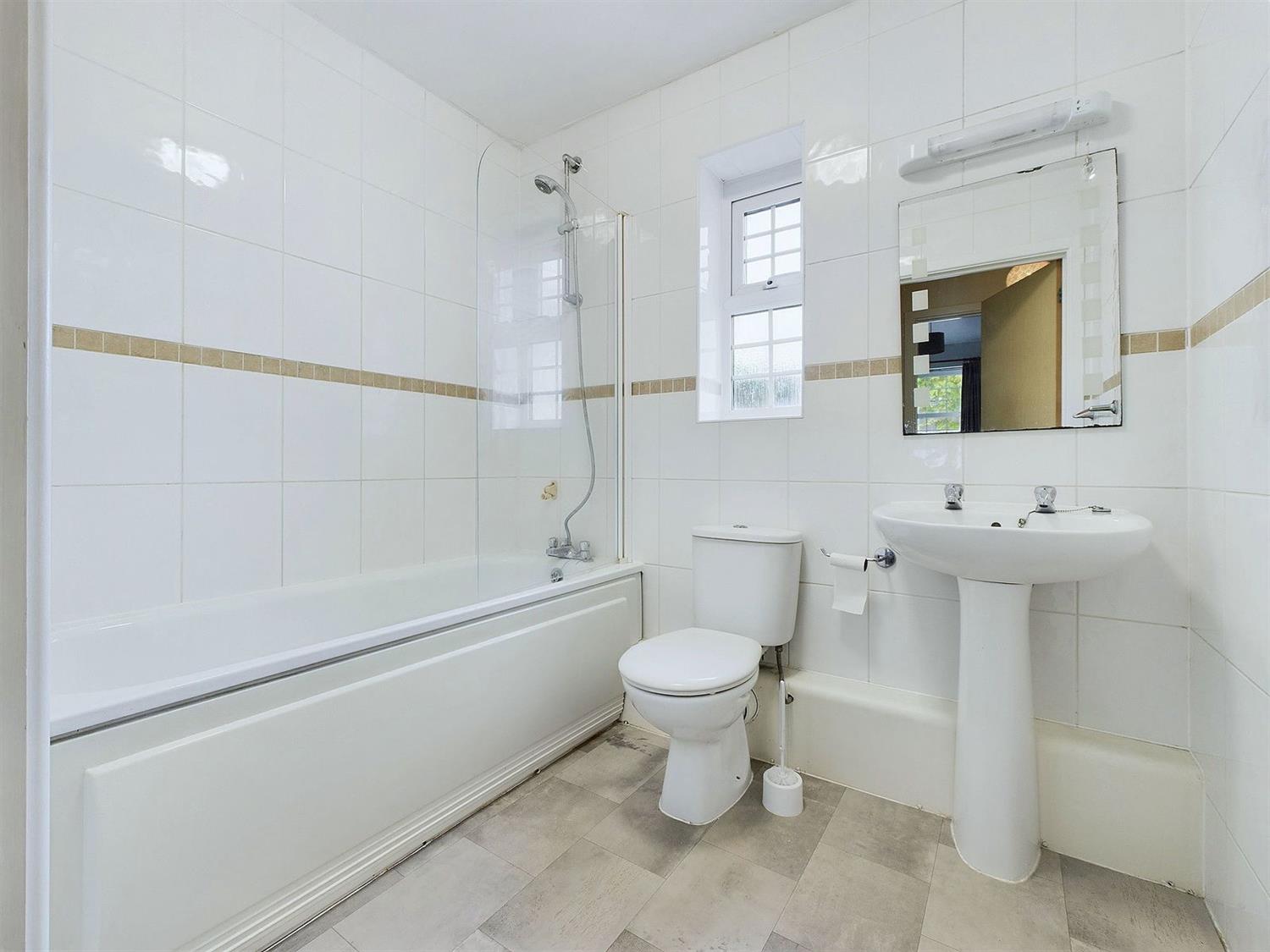 BathroomFrosted double-glazed side aspect. Fitted with a white suite comprising a panel bath with chromium mixer tap and shower attachment, glass shower screen, low level WC, pedestal wash hand basin, fully tiled walls, mirror and shaver light, radiator.