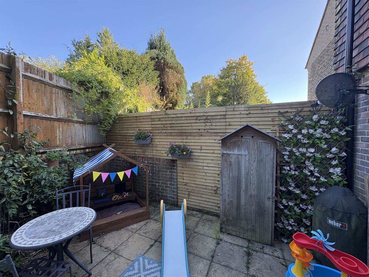 A pathway leads to the property with a gated access to a private enclosed garden having a patio area, lawn, flower and shrub borders. To the rear of the property there is an enclosed courtyard.