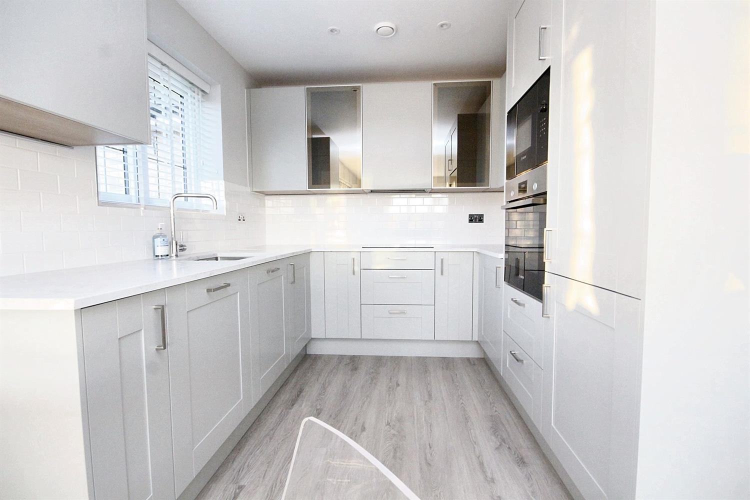A Stunningly presented, furnished two bedroom top floor luxury apartment, situated in the highly sought after Highwood development. Communal entrance hall with security entrance phone, personal entrance hall with laminate wood flooring and a generously sized open plan lounge/kitchen/diner with integrated appliances. Main double bedroom with built in wardrobes and en suite bathroom, with a further second bedroom that also has fitted wardrobes and an en-suite shower room. Electric Heating. Two allocated parking spaces.