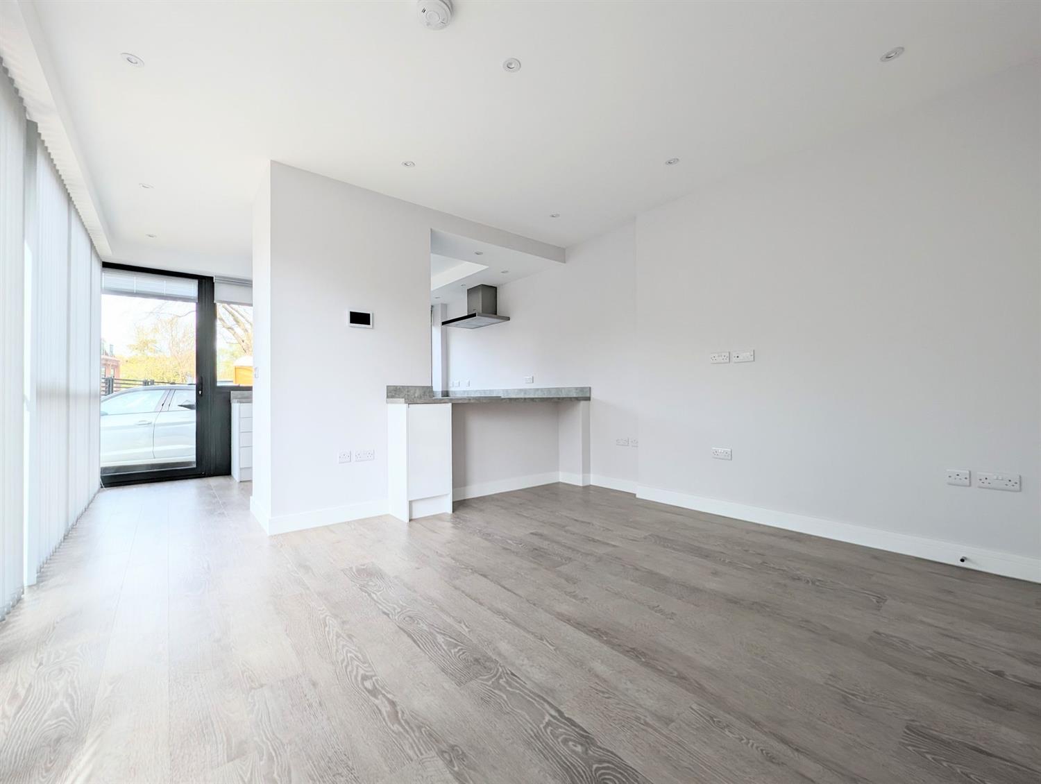 Immaculate 1 bed ground floor maisonette in gated development, heart of town. Own entrance, open plan living/kitchen, Bosch appliances, patio, double bedroom with built-in wardrobes, shower room, underfloor heating, parking for EV. Unfurnished. €‰Heat recovery system.