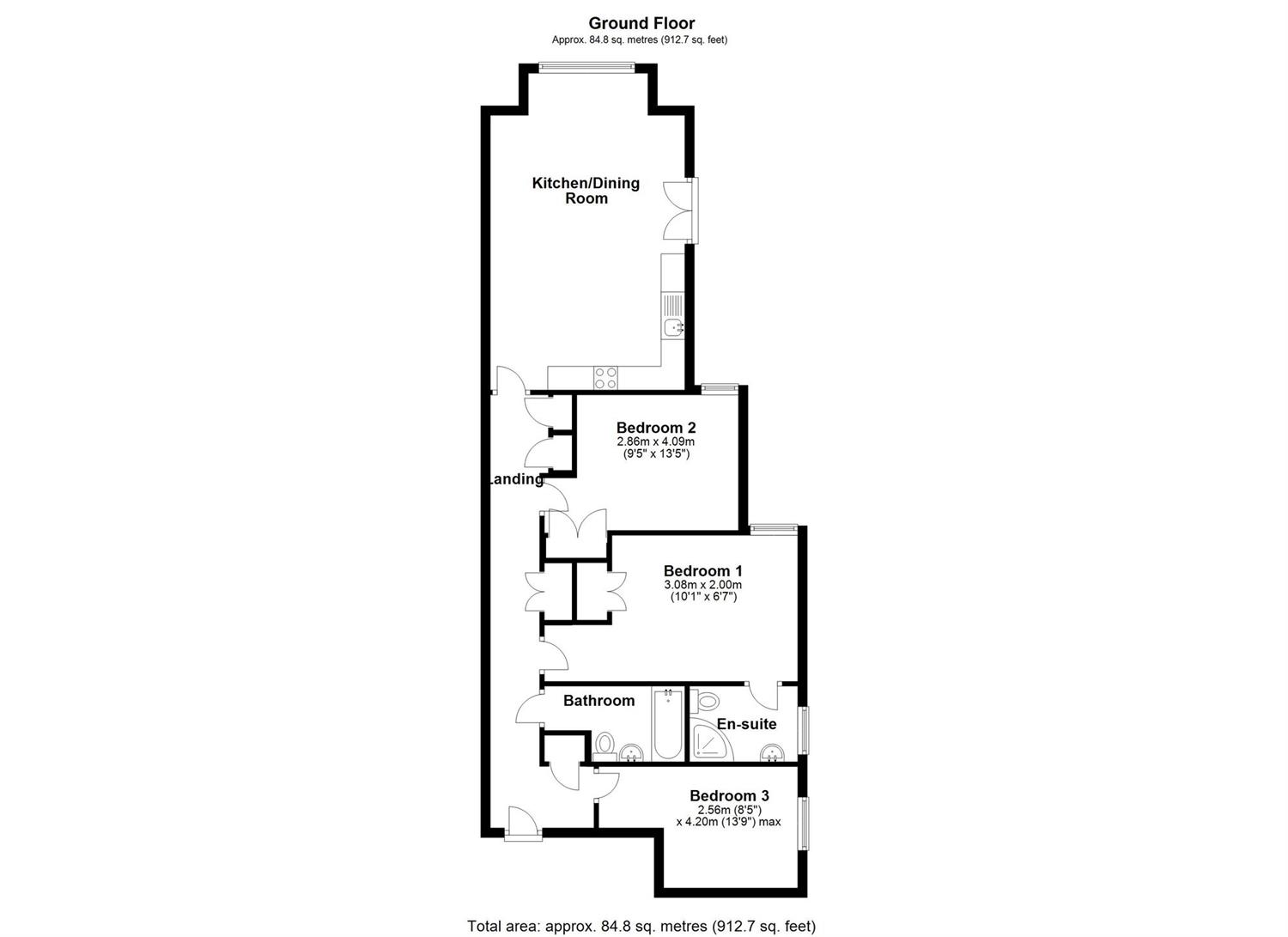 A large, first floor apartment situated in the town centre, very convenient for restaurants, bars, shops, railway station and Horsham park. The well presented accommodation comprises video entry security gate, large entrance hall, 21` open plan living/dining room/kitchen with doors out onto private first floor terrace, attractive fitted kitchen with appliances (oven, hob, dishwasher, washing machine and fridge/freezer) master bedroom with en-suite shower room and built in wardrobe, second double bedroom with built in wardrobe, main beautifully appointed bathroom and a further good sized study/home office. Gas fired central heating. Double Glazed windows. Communal bike store. One allocated parking space. EPC Rating B.